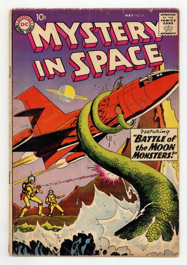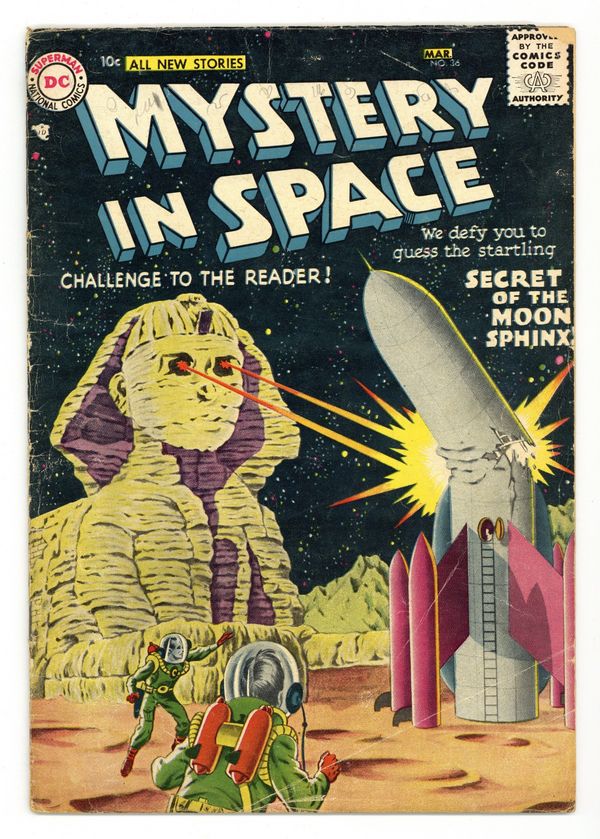 "Secret of the Moon Sphinx," "Earth's Lucky War," "The Road to Outer Space" (art by Carmine Infantino), and "The Expanding Space-Taxi" (pencils by Gil Kane). Grey-tone cover (by Kane?). 36 Pages, Full Color. Cover price $0.10.