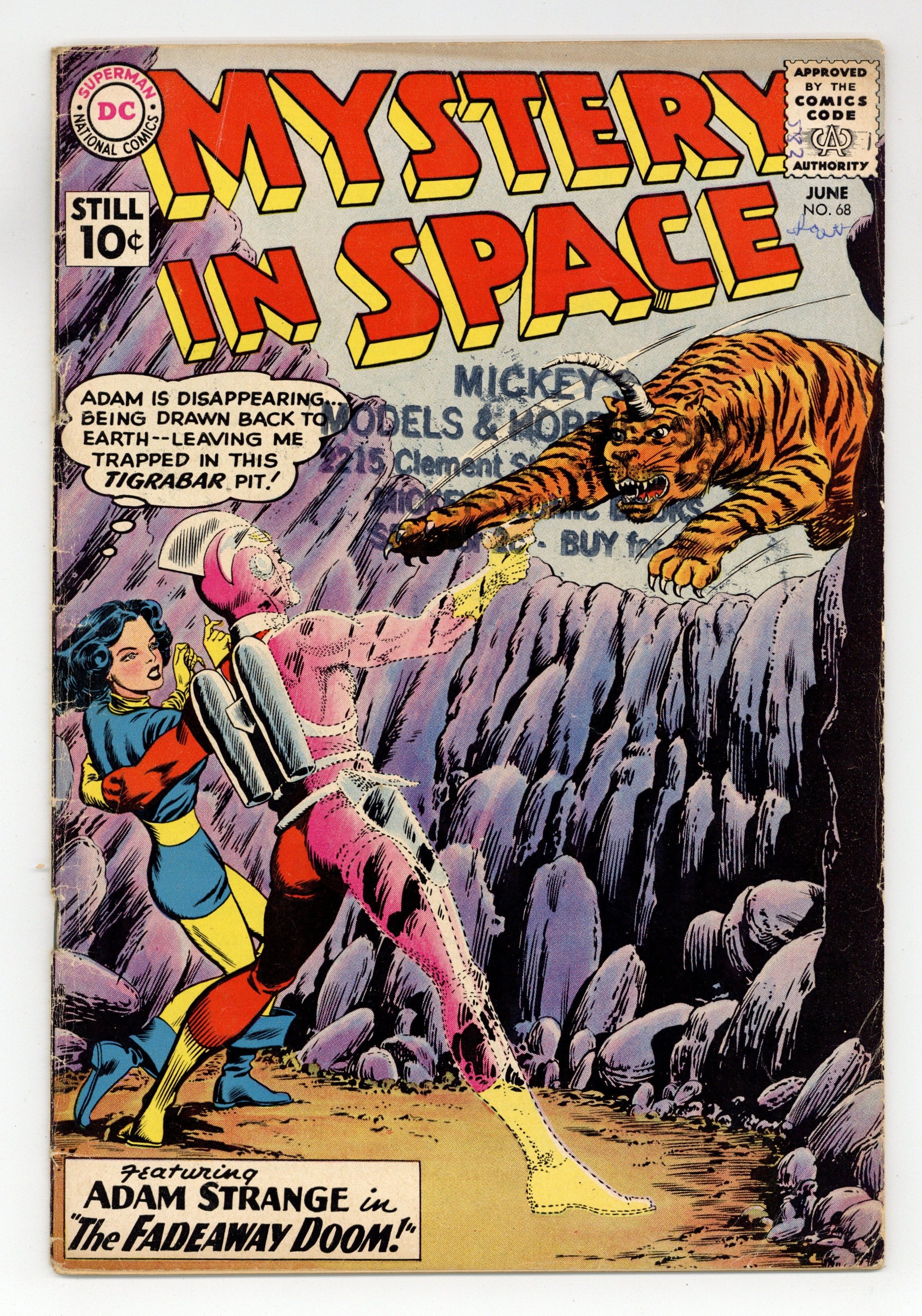 Adam Strange stars in "The Beast From the Runaway World!" (pencils by Carmine Infantino). Back-up stories: "The Day the Earth Surrendered!" and "Behind the Space Curtain!" Grey-tone cover (pencils by Gil Kane). 36 Pages, Full Color. Cover price $0.10.