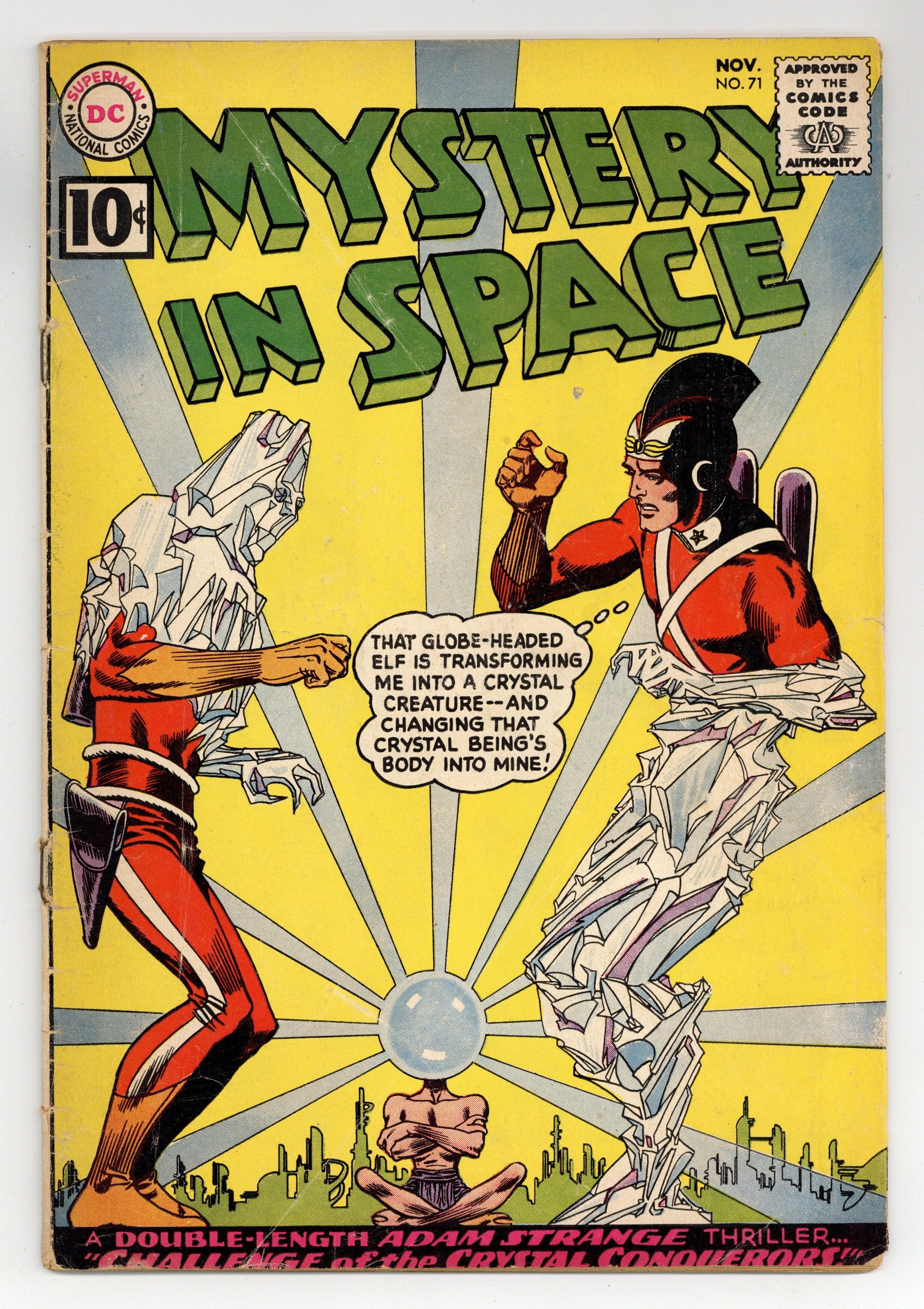 Last 10-cent cover-price. Adam Strange stars in "The Challenge of the Crystal Conquerors!" (pencils by Carmine Infantino). Back-up story: "The Last Space-Feud!" (art by Sid Greene?). Infantino cover pencils. 36 Pages, Full Color. Cover price $0.10.