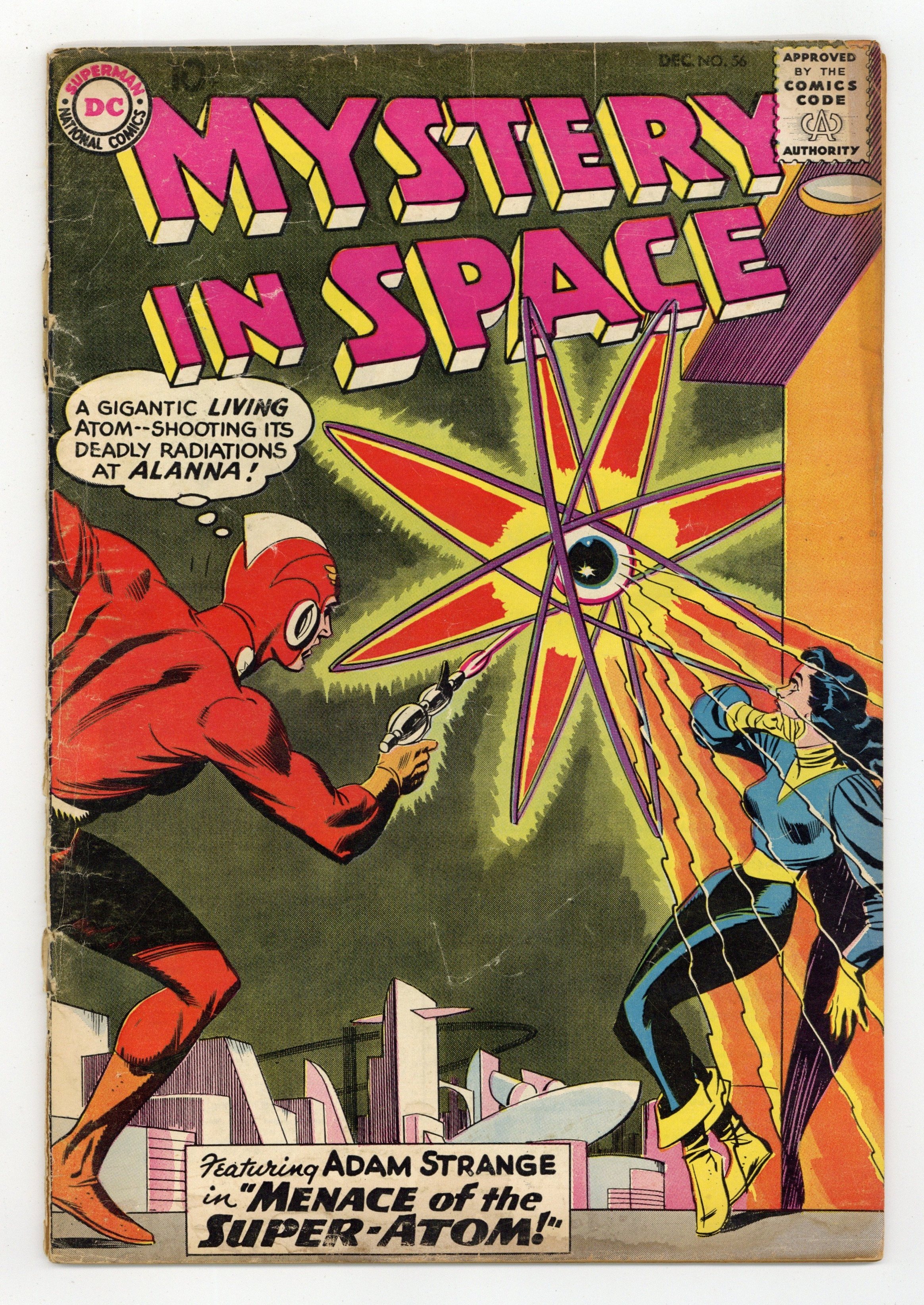 Adam Strange stars in "The Menace of the Super-Atom!" (pencils by Carmine Infantino). Back-up stories: "Raiders of the Waterless World!" (pencils by Gil Kane) and "Super-Cook of Space!" Kane cover pencils (Infantino inks?). 36 Pages, Full Color. Cover price $0.10.