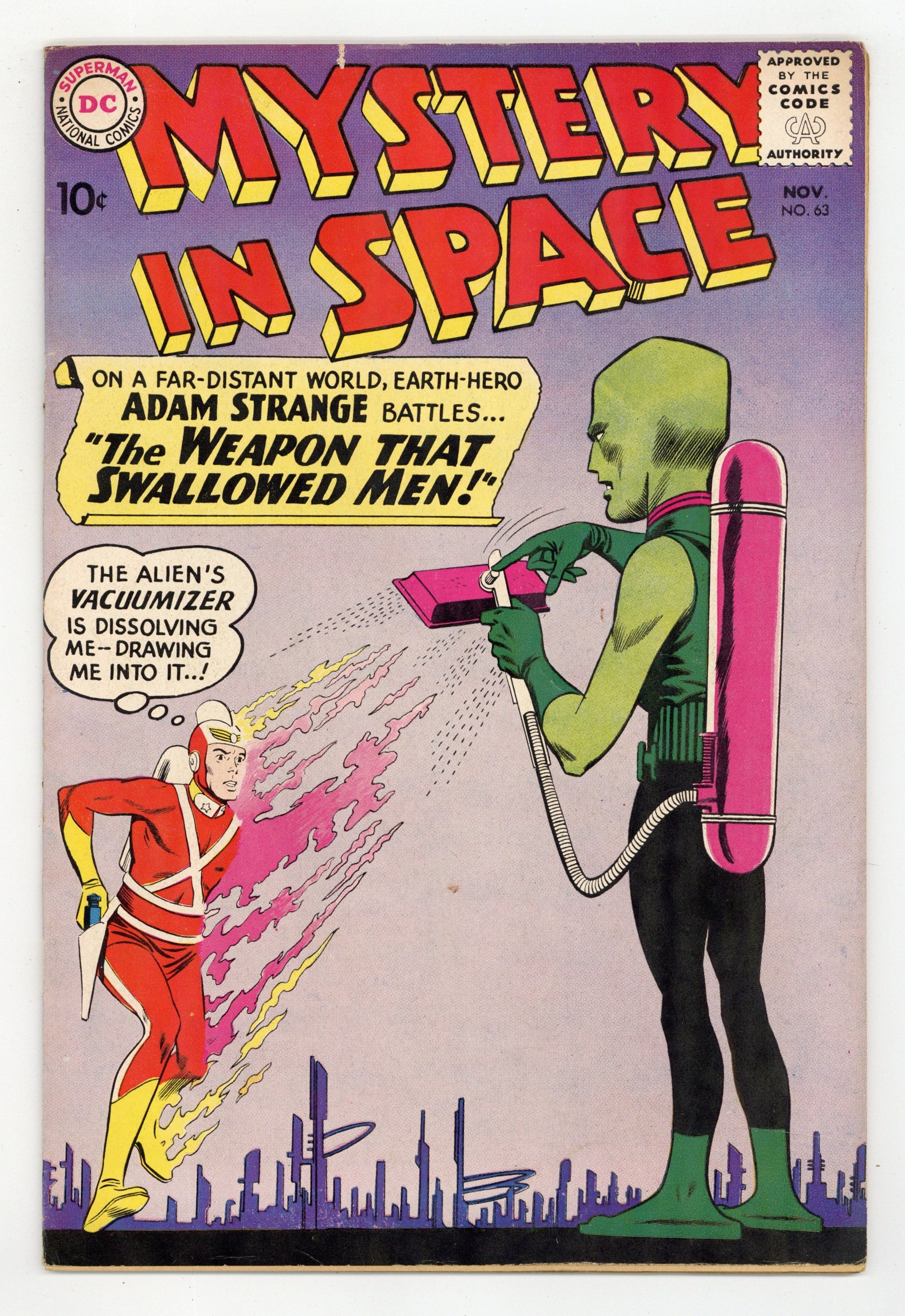Adam Strange stars in "Invaders of the Underground World!" (pencils by Carmine Infantino); "Amazing Ark of Space!" (pencils by Sid Greene?); and "Riddle of the Counterfeit Earthmen!" (pencils by Gil Kane). Kane cover pencils. 36 Pages, Full Color. Cover price $0.10.