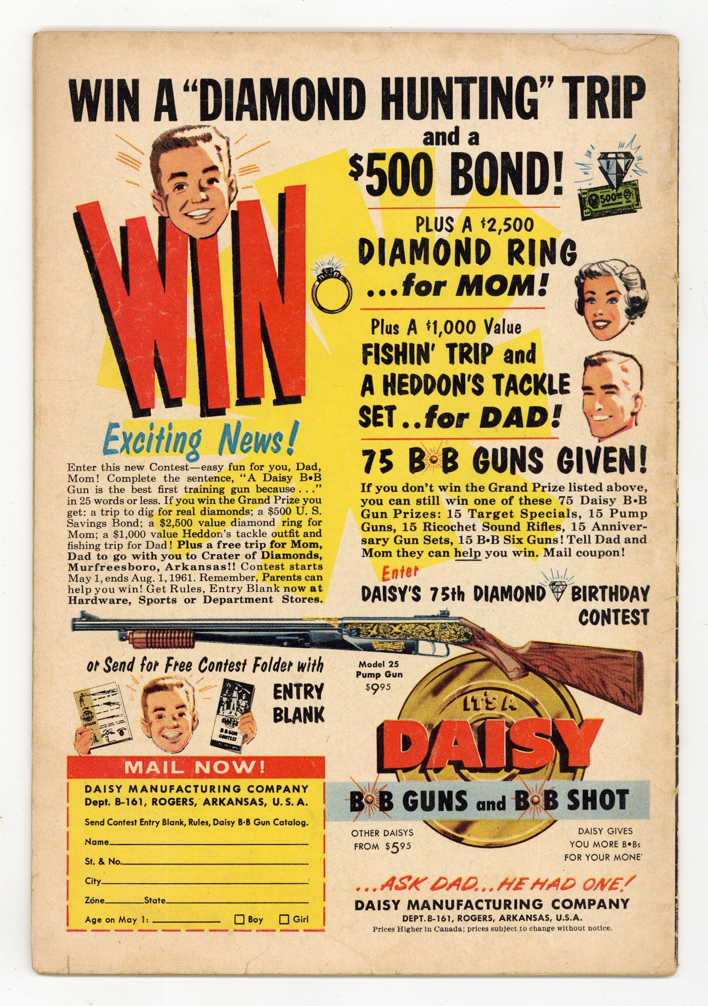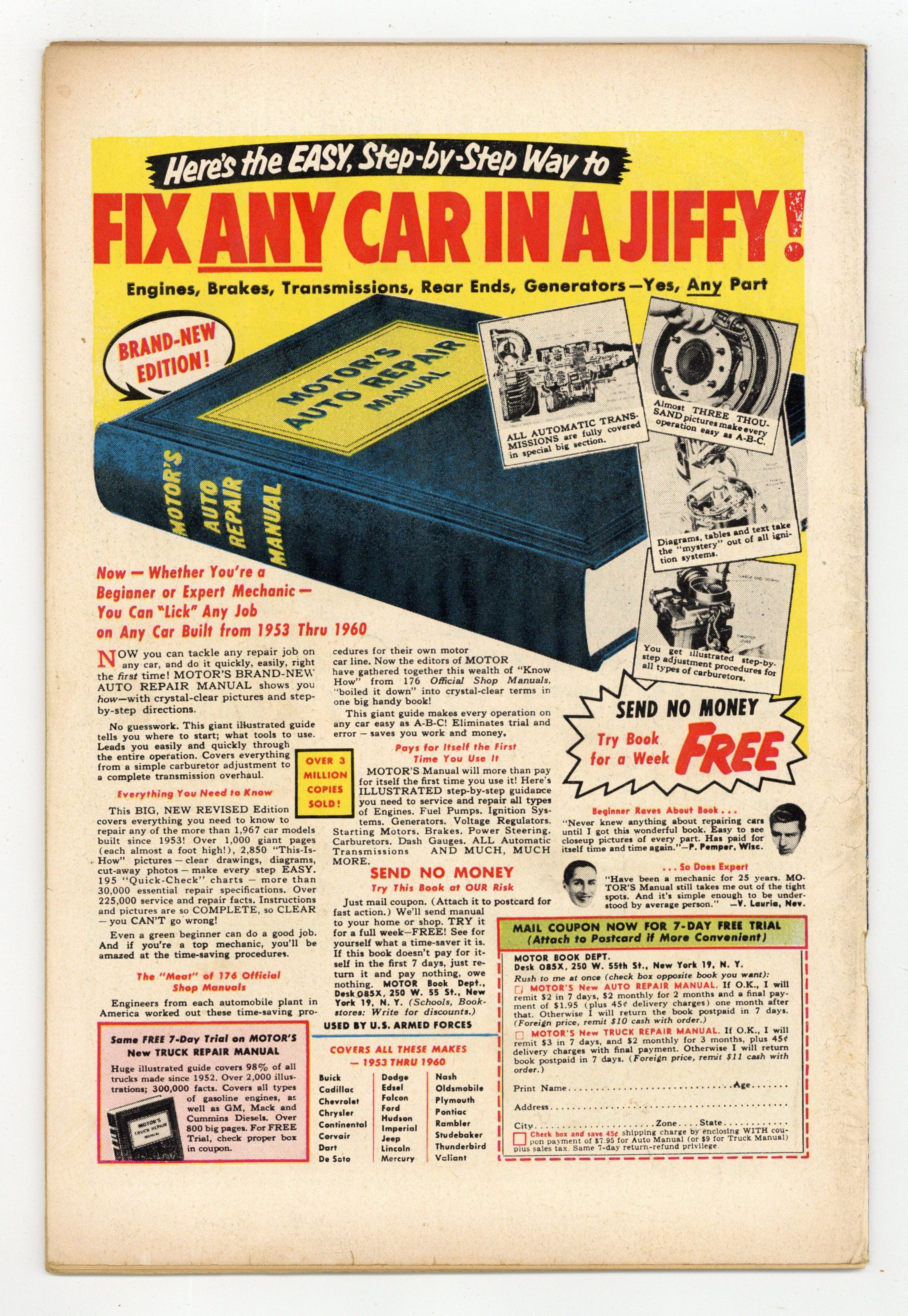 Published 1959 by Charlton Comics Group.$13.00- 1" spine split from bottom. Centerfold detached. Water damage. Chew.