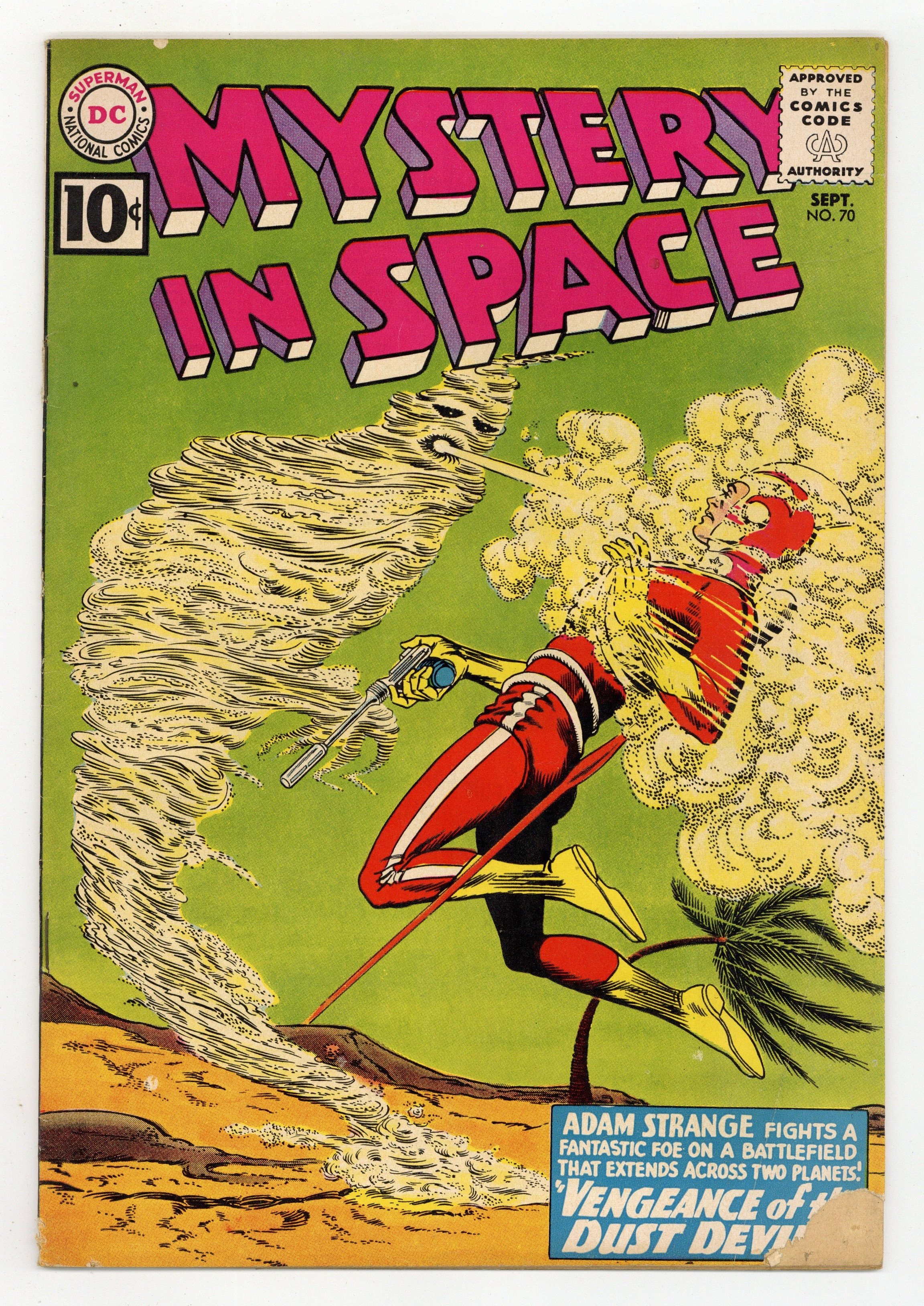 Adam Strange stars in "Vengeance of the Dust Devil!" (pencils by Carmine Infantino). Back-up stories: "The Billion-Year Evolution!" (art by Murphy Anderson) and "The Bravest Man in Space!" (art by Sid Greene?). Infantino cover pencils. 36 Pages, Full Color. Cover price $0.10.