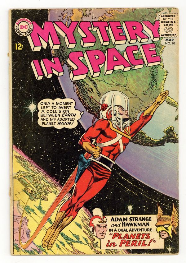 Adam Strange and Hawkman team up for the first time in "Planets in Peril!" (pencils by Carmine Infantino, inks by Murphy Anderson). Hawkman moved to his own title the next month. Letter to the editor from Funky Winkerbean creator Tom Batiuk. Infantino/Anderson cover. 36 Pages, Full Color. Cover price $0.12.