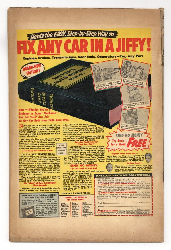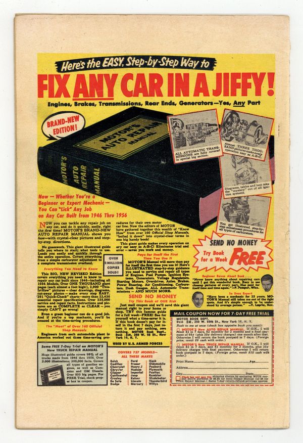 Published Oct 1955 by Marvel/Atlas.$43.00- 2" cumulative spine split. Cover oxidation.