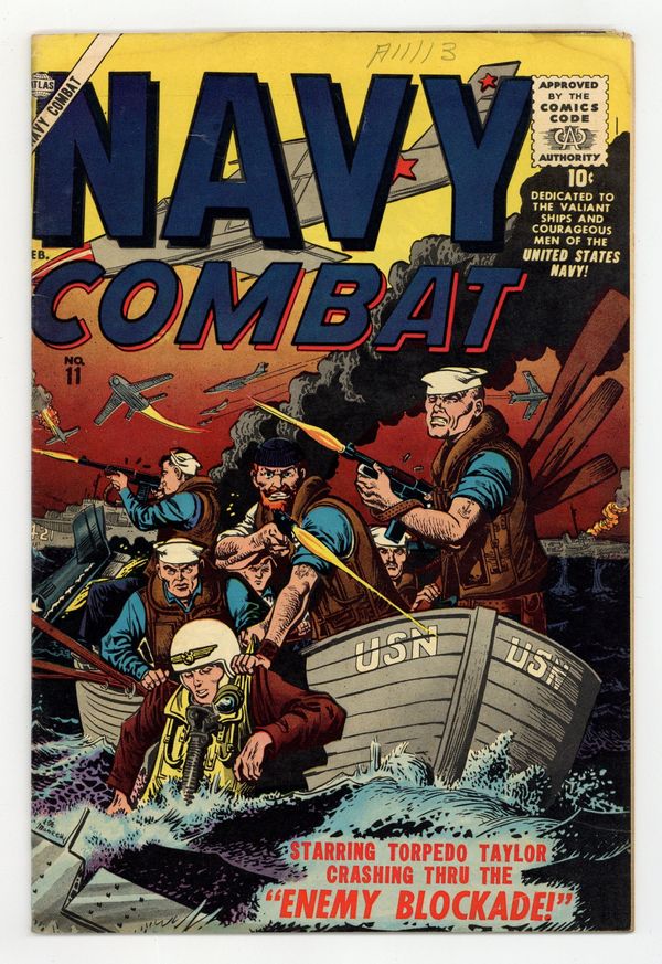 Torpedo Taylor in "Trail of the Killer!" and an untitled story (art on both by Don Heck). Also: "Evaculation" (art by Bill Benulis), "On Target" (art by Pete Morisi), and Our Fighting Fleet in an untitled story. Bill Everett cover. Cover price $0.10.