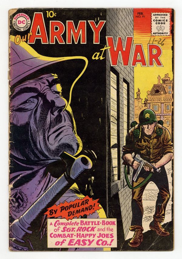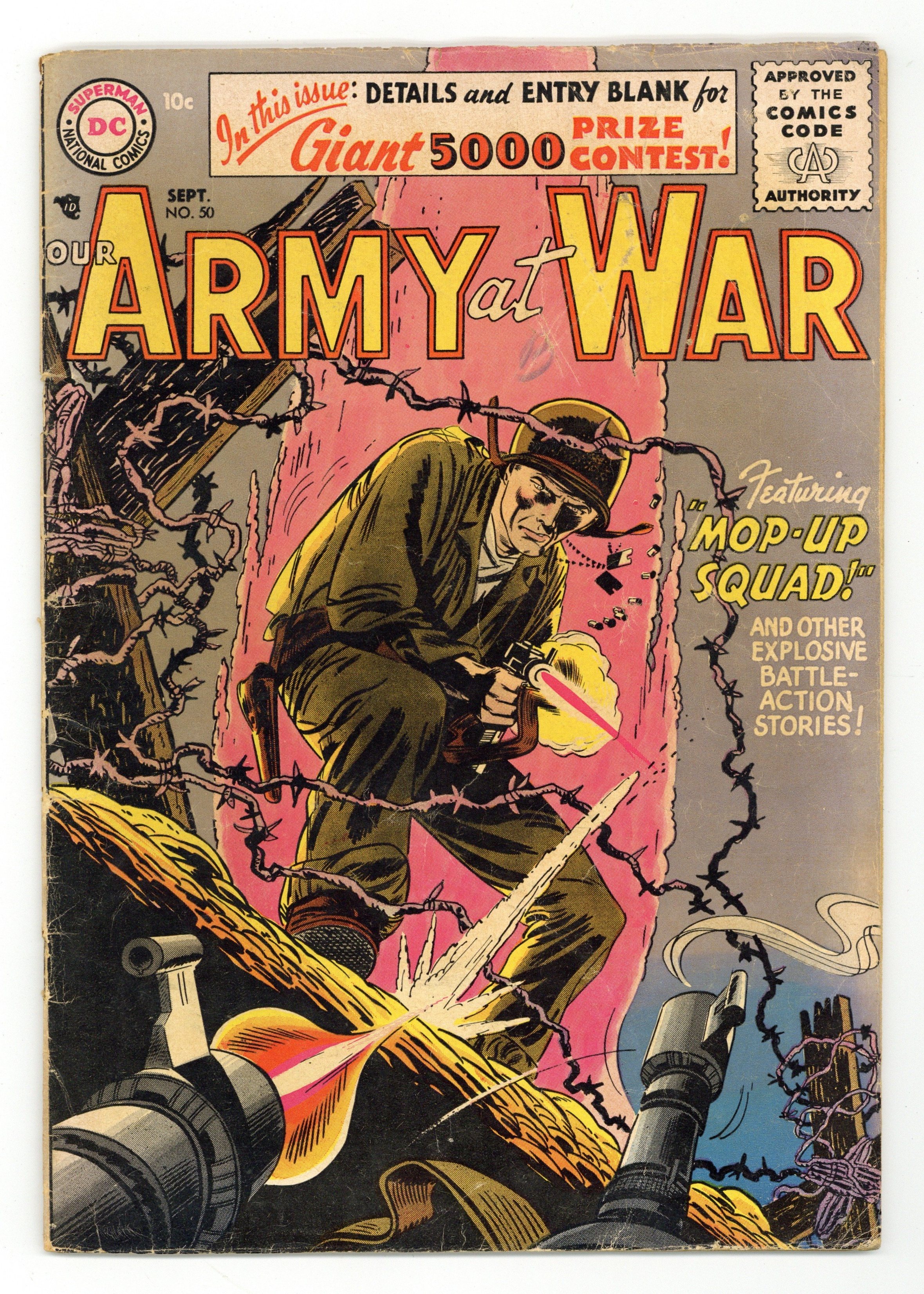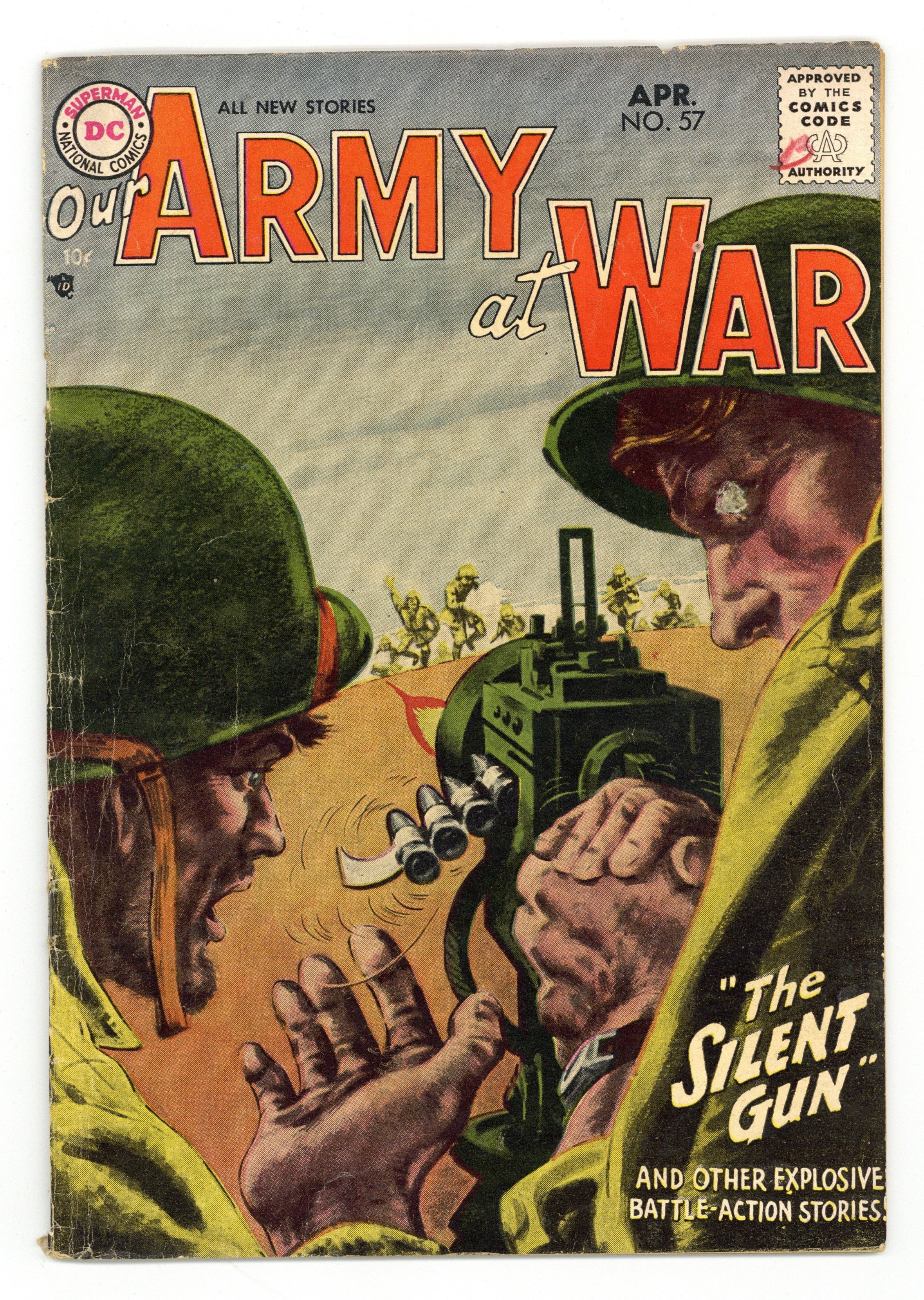 Cover art by Jerry Grandenetti. No Answer from Sarge starring Sgt Rock, script by Bob Kanigher, art by Joe Kubert. It's Fun to Help Others! public service announcement starring Superboy, script by Jack Schiff, pencils by Curt Swan, inks by Stan Kaye. Old Soldiers Never Run starring Sgt. Rock, script by Bob Kanigher, art by Joe Kubert. The Silent Piper starring Sgt Rock, script by Bob Haney, art by Joe Kubert. 36 Pages, Full Color. Cover price $0.10.