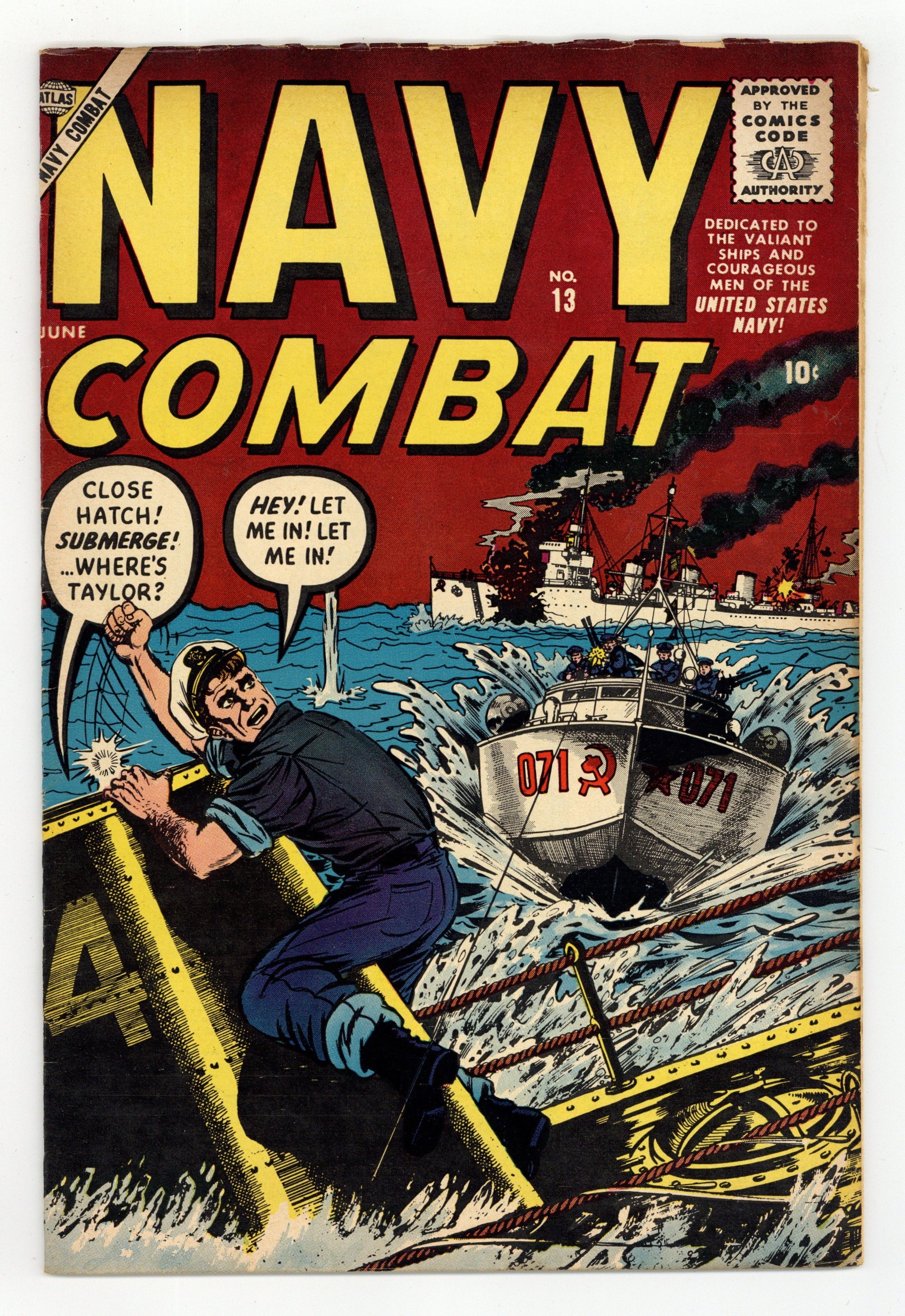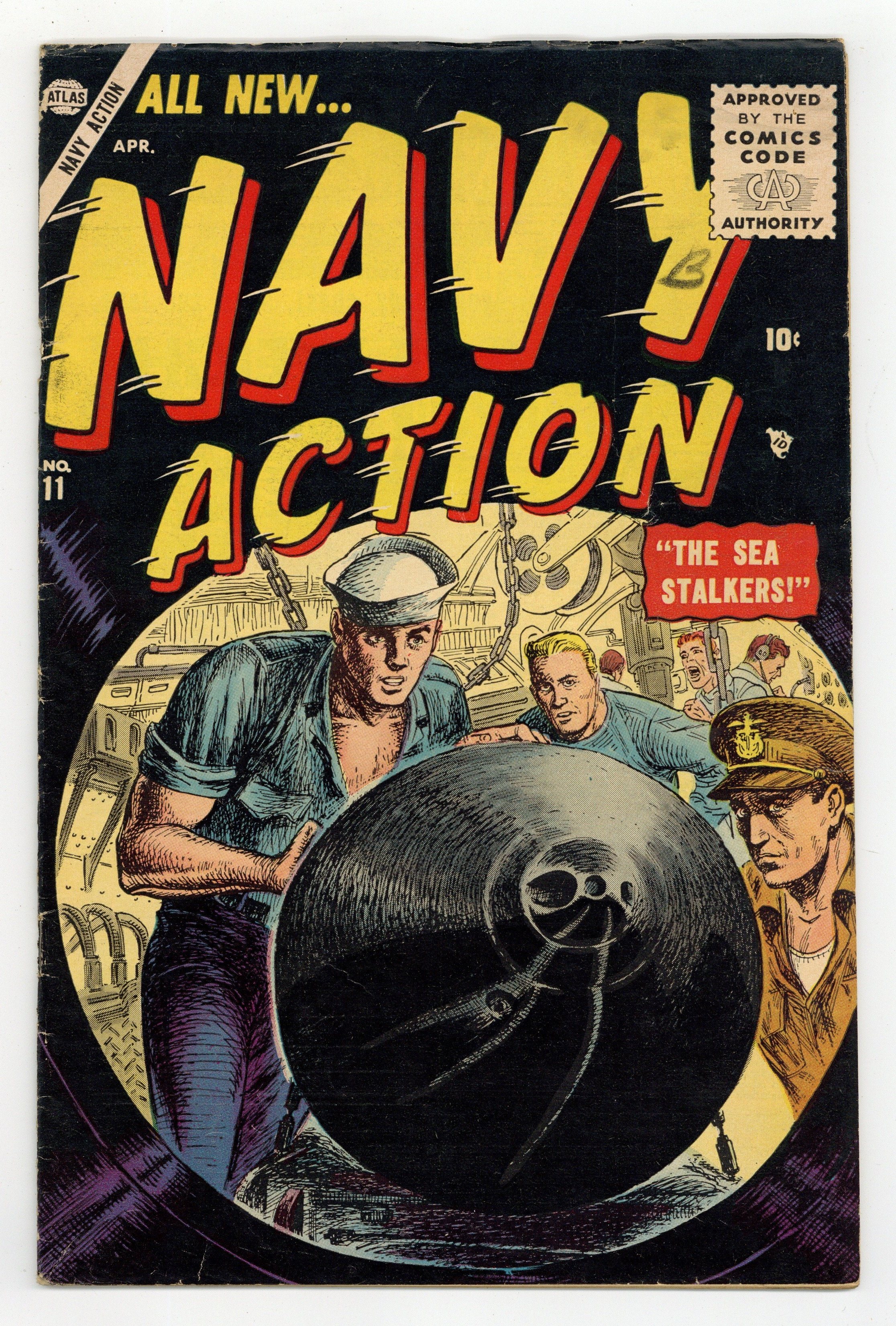 Two untitled Battleship Burke stories, plus "Torpedoed!" (art by Joe Sinnott), "Bombs Away," "Shakedown Cruise!" (art by Don Heck), and a two-page text story, "Fish and Fight." John Severin cover. Cover price $0.10.