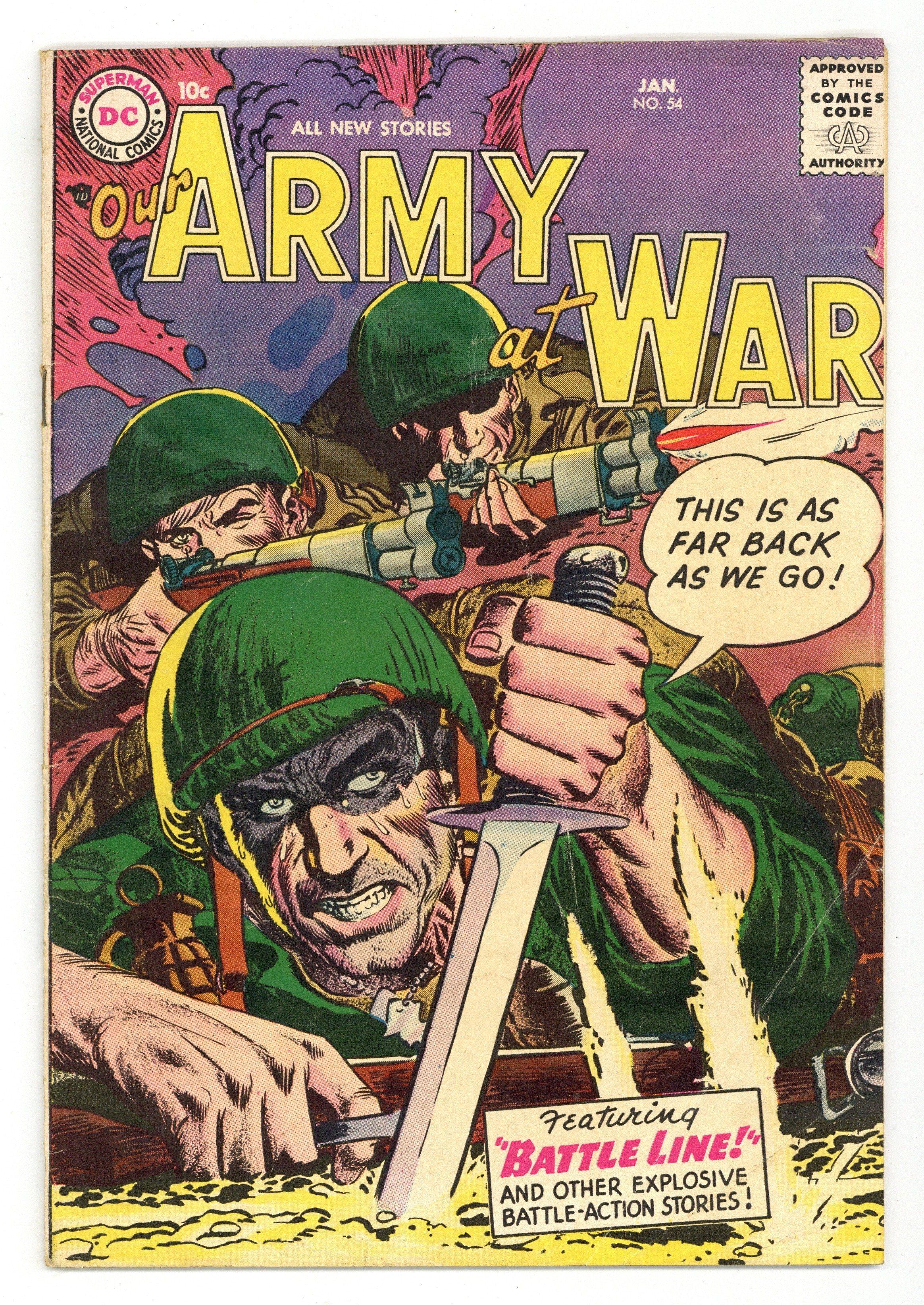 Cover art by Joe Kubert. Untitled story, script by Bob Kanigher, art by Jerry Grandenetti. Fence Fighter, script by Bob Haney, art by Jack Abel. Mile-Away War, script by Bill Finger, pencils by Ross Andru, inks by Mike Esposito. The Battle Key, script by Bob Haney, pencils by Jerry Grandenetti, inks by Robert Stuart. 36 Pages, Full Color. Cover price $0.10.