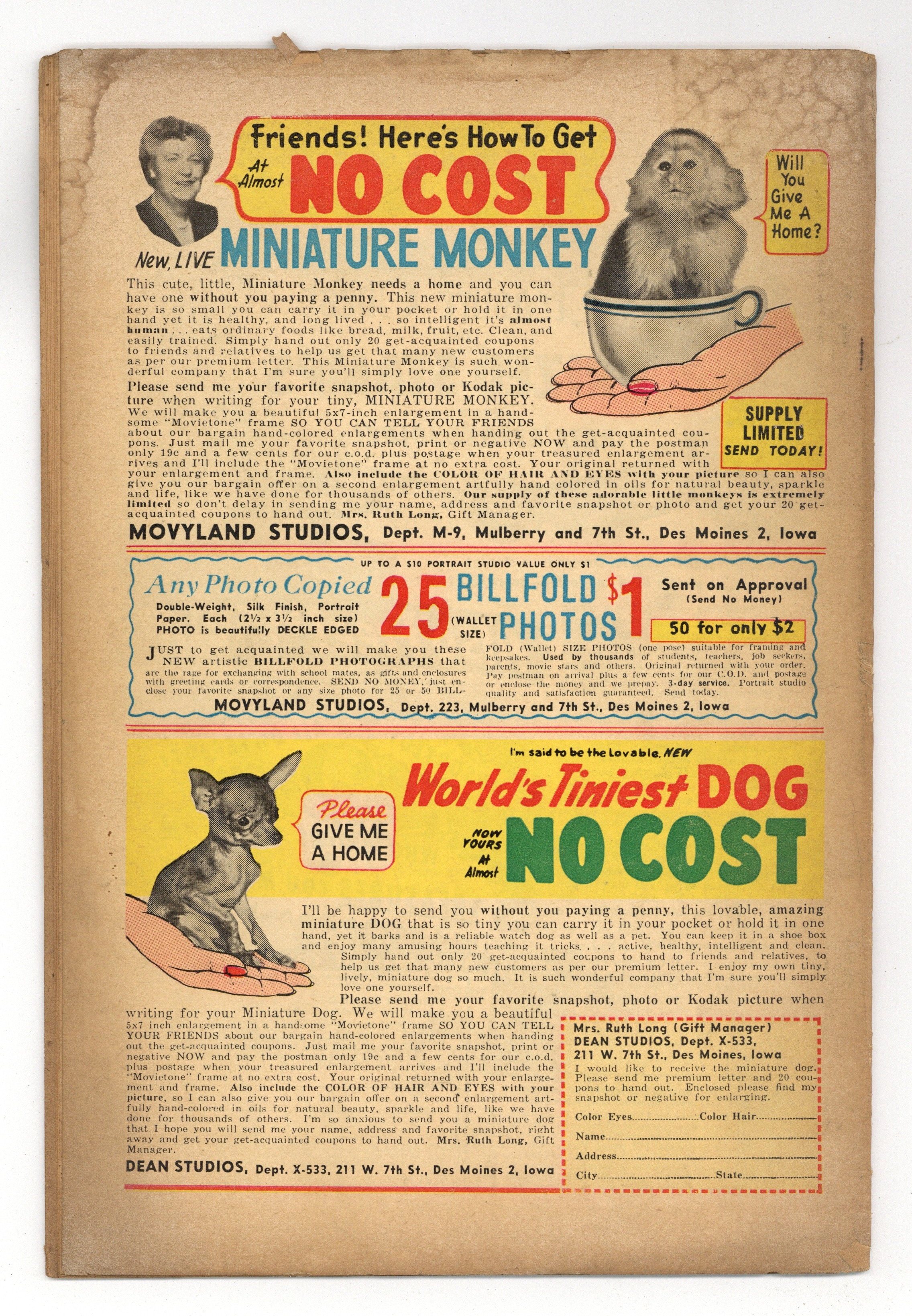 Cover art by Bill Everett. The Double Man!, art by George Roussos. By the Light of the Moon!, art by Bernard Baily. Something in the Fog, art by Dick Ayers. Midnight on the Moors, art by Pete Morisi. Just Your Luck text story. The Tiger's Fangs!, art by Syd Shores. Time without End, art by Robert Q. Sale. 36 pgs. $0.10. Cover price $0.10.