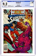Newsstand Edition. "Cries in the Night!" Story and art by John Byrne. The screaming terror known as the Silver Banshee has returned and she's got revenge on her mind. How can Superman hope to defeat his enemy when his own super-hearing makes him even more susceptible to her powers than anybody? Maybe with a little help from the Batman? Cover price $0.75.