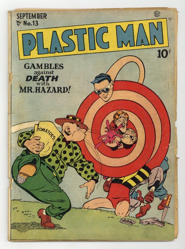 Untitled Plastic Man stories with Jets and Mr. Hazard. Woozy story, script by Joe Millard. Artifice starring Plastic Man. Steeplejack Dope text story with Plastic Man. Jack Cole cover/interior art. 52 pgs. $0.10. Cover price $0.10.