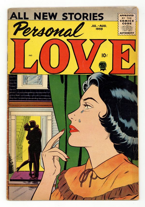 Cover by Matt Baker. Stories and art by Matt Baker and others. Beautiful covers and art by legendary good-girl artist Matt Baker elevate St. John's 1950s romance comic above the norm. Sandy swears revenge against her husband Bill for ruining her father's oil business, in a cautionary tale with art by Baker. Nora's boyfriend Dick finally returns from military service, but he's behaving strangely and tries to break it off with her for unknown reasons. New doctor Helen faces prejudice over her gender from arrogant surgeon Warren, in a story whose art may be the work of pioneering female comics artist Lily Renee. Cover by Baker is more than a little suggestive. Canine Cupid; Twice Guilty; The Frightful Truth; Wife Without Principles; For Nurses Only. 32 pages, Full Color. Cover price $0.10.