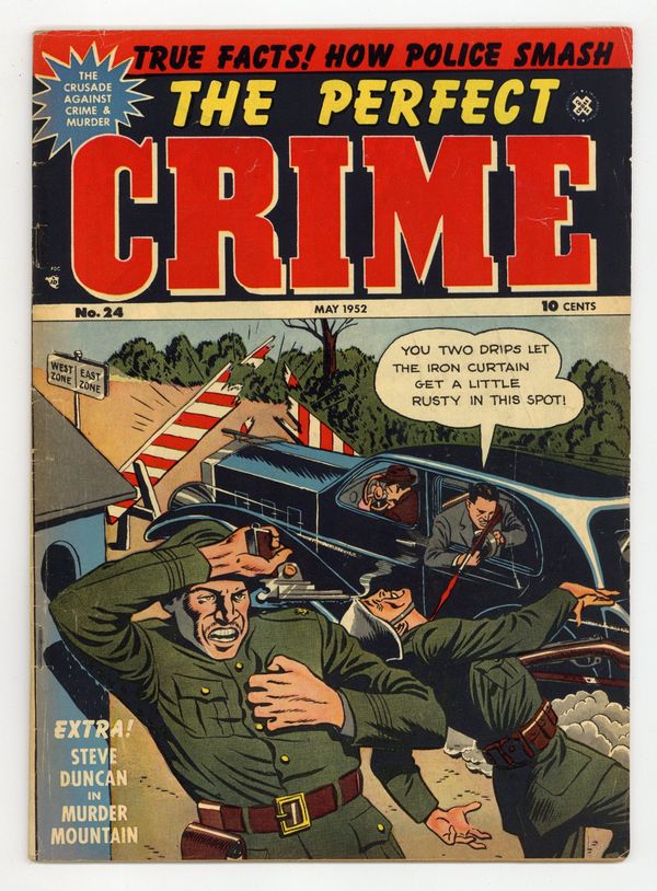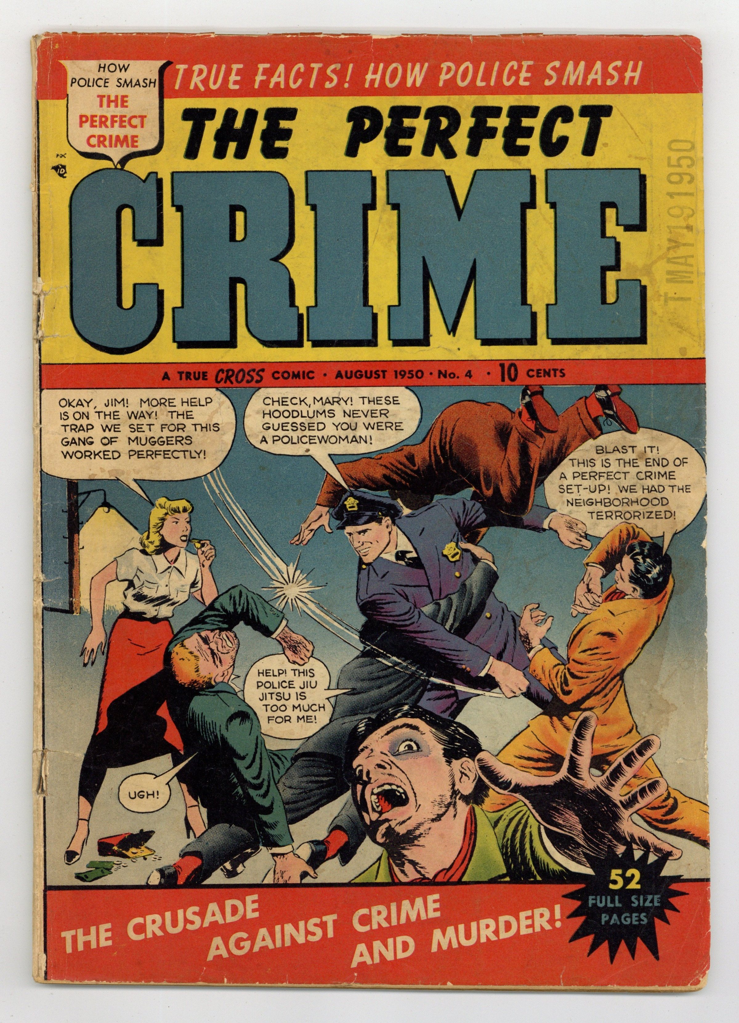 "When Thieves Fall Out" (art by Bob Powell), "I Found the Time to Kill" (art by Augie Scotto), "Clyde Rozic, the Ambitious Hoodlum" (art by Cal Massey) "The Too Careful Killer," "The Perfect Setup" (art by Massey), "The Gimp," and "The Milked Murder!" (art by Scotto). Two page text story, "They're Swindling You." Cover price $0.10.