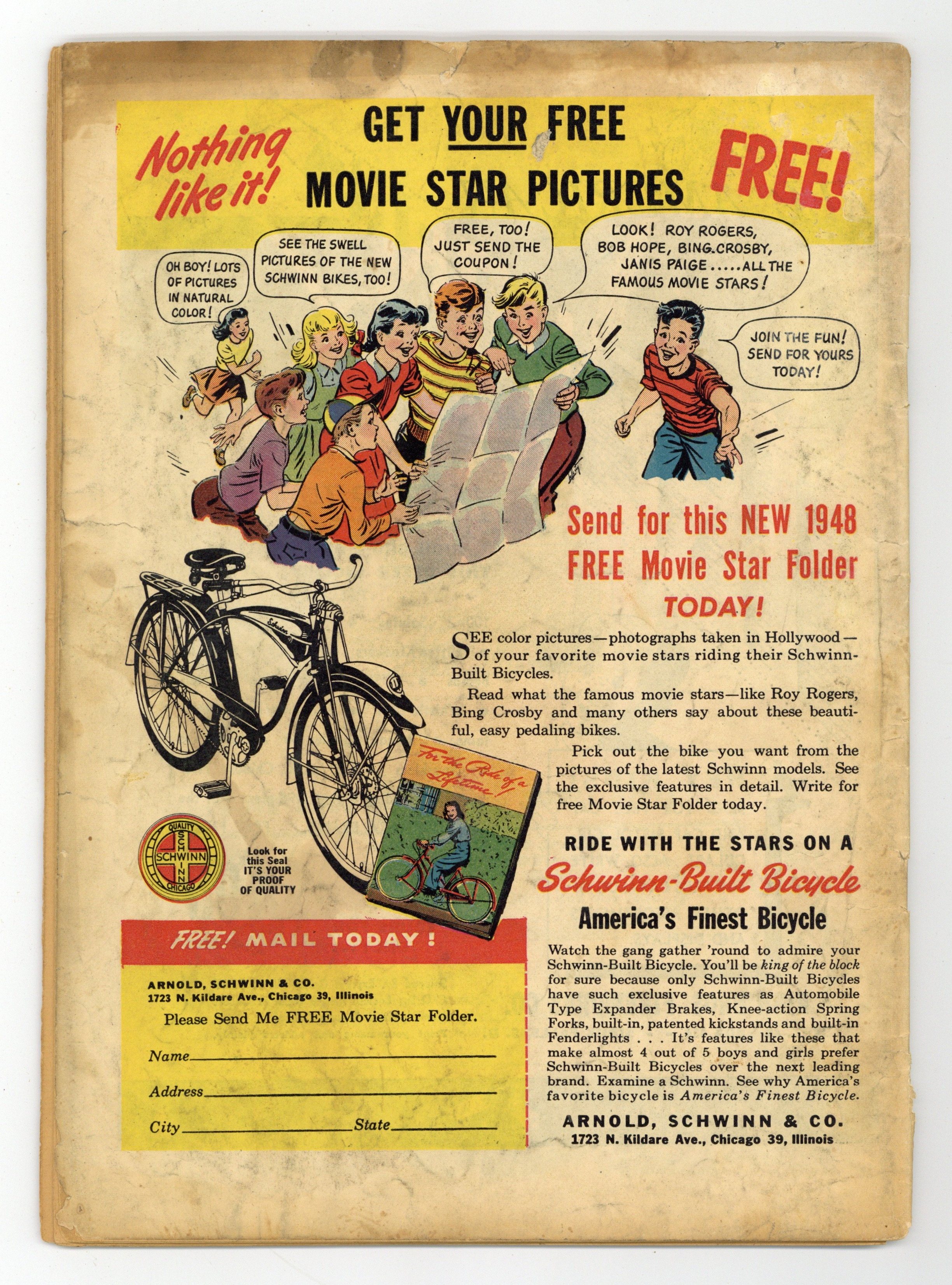Published Mar 1946 by Fiction House.$31.00- 6" Cumulative spine split. Staple rust. Rust migration.