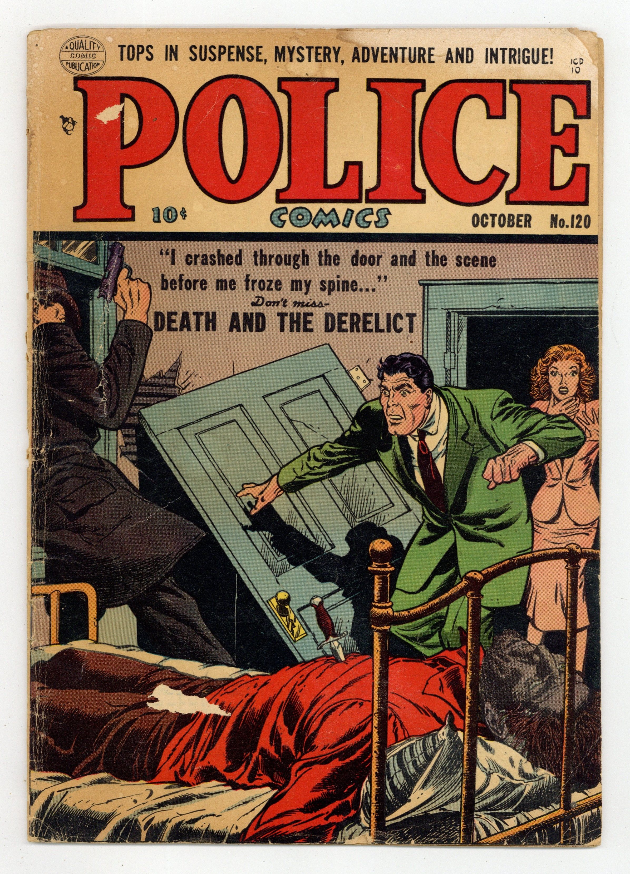 Reed Crandall/Nick Cuidera cover. Ken Shannon in "Death and the Derelict" (Crandall art), "Inspector Denver," T-Man in "The Red Racket," and "One Mad Night." One page filler, "Pict-O-Crime." Two page text story, "The Cat Burgler." in Cover price $0.10.