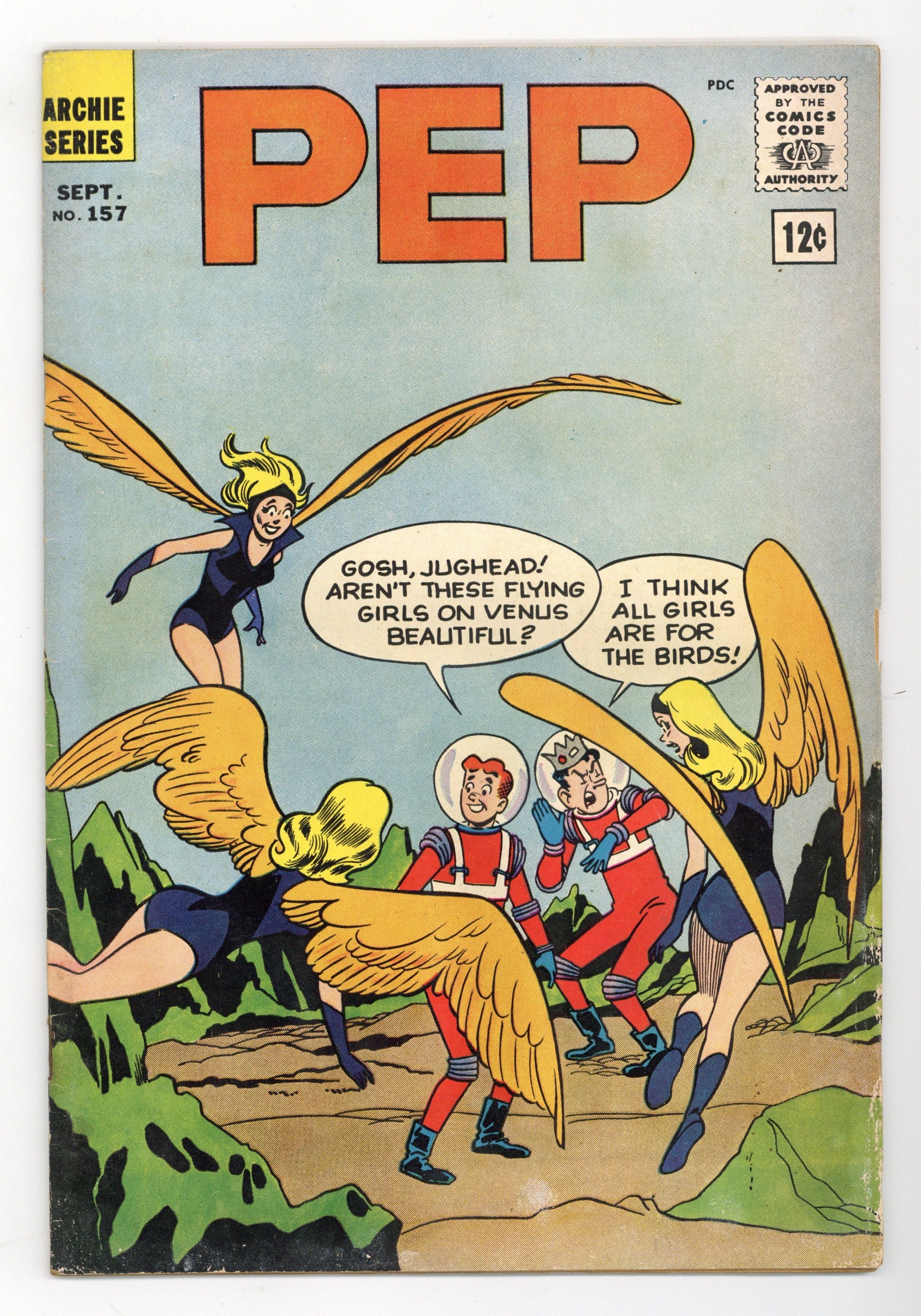 Cover art by Samm Schwartz. "Eternal Youth," script by Frank Doyle, pencils by Dan DeCarlo, inks by Rudy Lapick; The girls start reliving their childhood by playing childish games, so the boys decide to act infantile as well. "Late Date," art by Bill Vigoda; Ronnie thinks Archie is standing her up when she sees his car being worked on. "The Monster's Eye," art by John Rosenberger; Jaguar encounters a giant snail. "A Bored Game," script and art by Joe Edwards; Li'l Jinx can't find the money in her Moneyland game and now she has no game to play with her friends. "Reflections," script by Frank Doyle, pencils by Dan DeCarlo, inks by Rudy Lapick; After learning that every person has his own personal gremlin, Archie meets his gremlin, an invisible creature who exists only to be the cause of all his troubles. 36 pgs., full color. Cover price $0.12.
