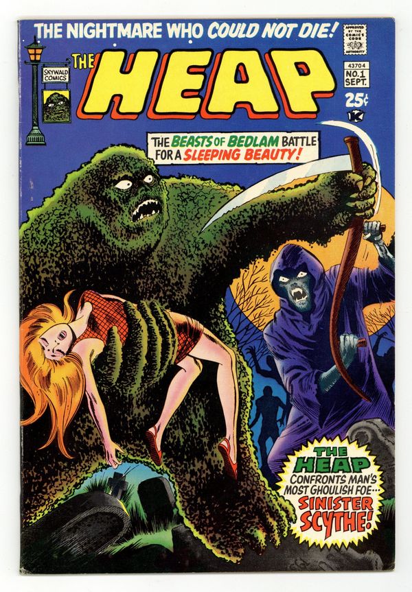 Cover by Tom Sutton and Jack Abel. Edited by Sol Brodsky. Stories and art by Bob Kanigher, Tom Sutton, Jack Abel, Alvin C. Hollingsworth, Henry C. Kiefer and Everett Raymond Kinstler. Reprints of horror and science-fantasy comics from the 1950s, plus the comics debut of the heroic muck-monster from Skywalds Psycho magazine. The origin of The Heap; tragedy strikes a Mars mission. First and only issue of the series. 48 pages, Full Color. Cover price $0.25.