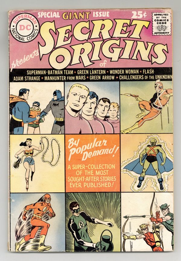 Reprints: Adam Strange (from Showcase 17), Green Lantern (G.L. 1), Challengers of the Unknown (Showcase 6), J'onn J'onzz (Detective 225), Flash (Showcase 4), Green Arrow and Speedy (1 page text), Superman-Batman team (World's Finest 94), and Wonder Woman (W.W. 105). Pencils by Jack Kirby, Gil Kane, Carmine Infantino, and others. Cover price $0.25.