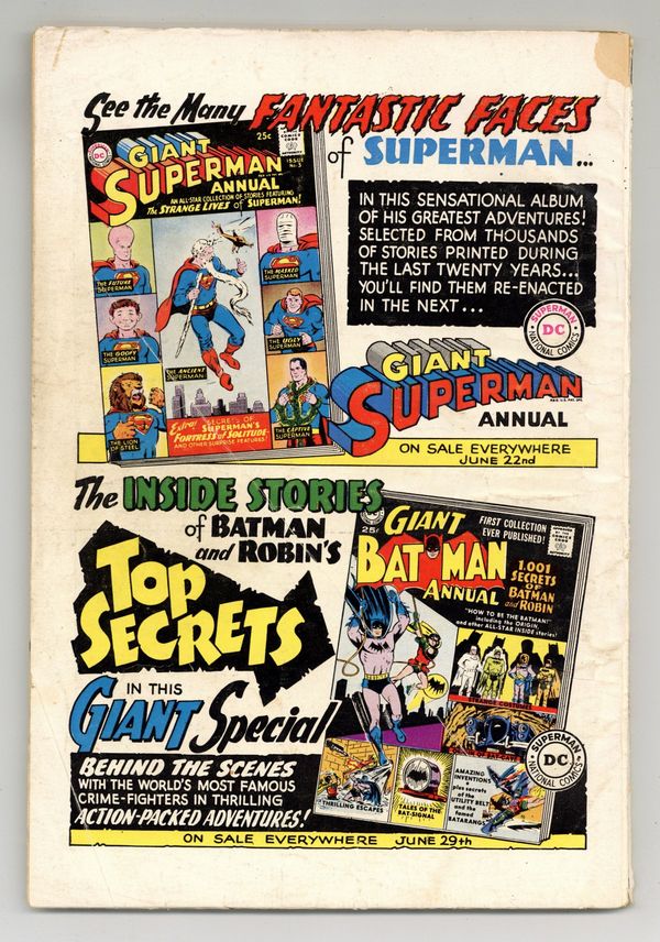 Cover pencils by Dick Dillin, inks by Sheldon Moldoff. The Creatures from Atlantis starring Aquaman and Aqualad, script by Jack Miller, art by Ramona Fradon; Aquaman gets an S.O.S. from Atlantis; Aquaman is captured, but he learns the plans of the Amphibious Aliens. The Battle of the Sea Creatures starring Aquaman and Aqualad, script by Jack Miller, art by Ramona Fradon; Aquaman and Aqualad stop amphibious aliens and force them back to their own dimension. 36 Pages, Full Color. Cover price $0.10.