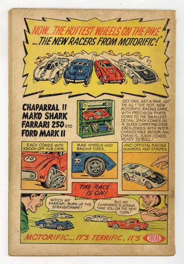 3rd appearance of the Teen Titans. Cover art by Nick Cardy. The Return of the Teen Titans, script by Bob Haney, art by Nick Cardy. The Teen Titans battle the rock 'n' roll robbers The Flips, who use a surfboard, a cheerleader's baton, and a trick motorcycle to steal from the public and confound the Titans. The series continues in Teen Titans #1 (1966). 36 Pages, Full Color. Cover price $0.12.