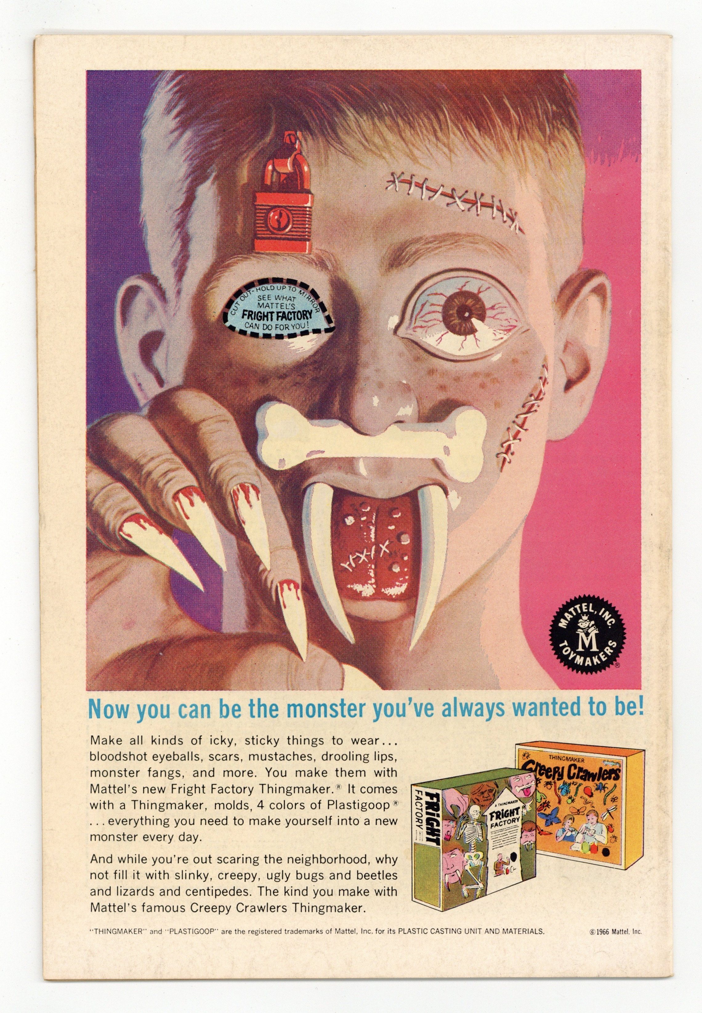 Cover by Bruno Premiani. "Alias Negative Man," script by Bob Haney, pencils by Dick Giordano, inks by Sal Trapani; The Brotherhood of Evil captures Negative Man in a lead coffin; The other members of the Doom Patrol act quickly to place Larry's body in suspended animation, so that he doesn't die from prolonged separation from his other self; The Brotherhood then launches a campaign to cause civil unrest around the world using subliminal messages; The Doom Patrol contacts the Flash to substitute for their captured member; Flash disguises himself as Negative Man to make the Brotherhood think they failed to capture the real Doom Patrol member; Next the Doom Patrol destroys the satellite responsible for the subliminal messages, foiling the Brain's plot. 36 Pages, Full Color. Cover price $0.12.