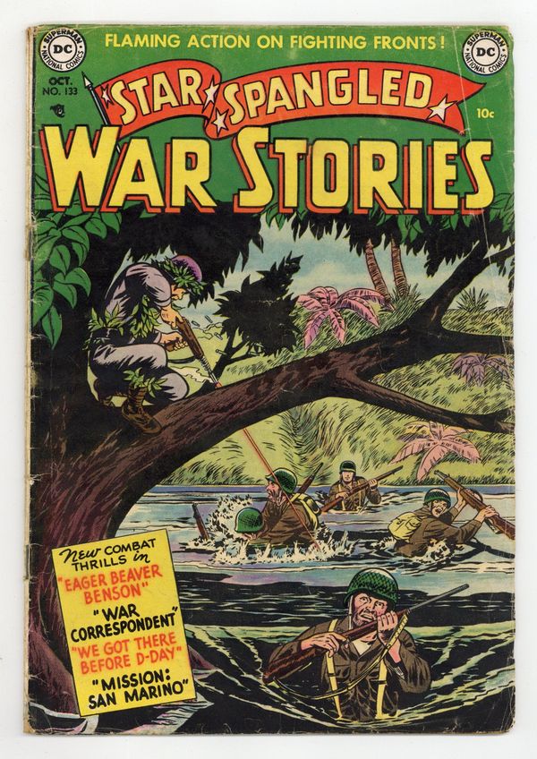 Third issue of the 10c cover-priced series. (hereafter the numbering reverts back to #3 so that this title has two issues that take the #3 position). The first three issues of Star Spangled War Stories (1952)--#131-133--picked up the numbering from the last issues of Star Spangled Comics #1-130). NOTE: There is also a 12c cover priced edition with the same issue number that was published in 1967. Cover price $0.10.