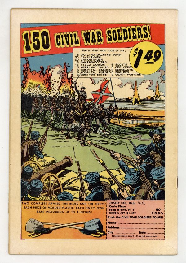 Cover art by Bob Brown. The Big Fish, script by David Kahn, art by Bob Brown. Tin Helmet, script by France Herron, art by Jerry Grandenetti. War Record, script by Art Wallace, art by Jim McArdle. Jinx Commander, script by William Woolfolk, pencils by Eugene Hughes, inks by Joe Giella. Private Pete filler page and Shorty filler page by Henry Boltinoff. 36 Pages, Full Color. Cover price $0.10.