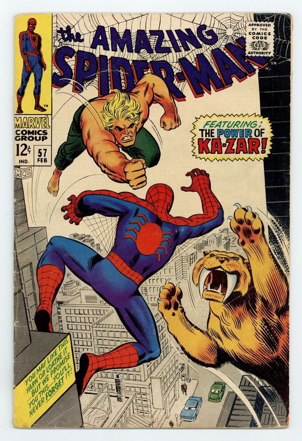 Cover by John Romita Sr. The Wings of the Vulture!, script by Stan Lee, art by John Romita; Spider-Man searches the city for a trace of Kraven the Hunter; while searching, he gets a bad cold and goes home; Blackie Drago, a.k.a. the New Vulture, defeats Spider-Man and leaves him unconscious in a pile of snow. Reprinted in Marvel Tales # 34 and 188. 36 pgs., full color. $0.12. Cover price $0.12.