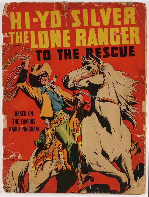 Variant cover has 15c cover price. Story by Fran Striker. Art by Robert R. Weisman. Dell's Large Feature Comic presents one of the very first appearances of the Lone Ranger in comic books, preceded only by an ice-cream company giveaway. Closer to a Big Little Book in the interior format, it features a text story of the Lone Ranger and Tonto with regular full-page illustrations. The masked hero of the West battles outlaws with help from his sidekick Tonto and faithful horse Silver, never even waiting for anyone to thank him. 8 1/2-in. x 11 1/2-in, 72 pages, B&W. Cover price $0.10.