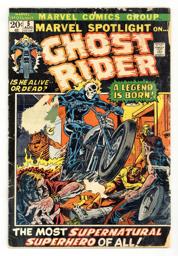 Origin and first appearance of the Ghost Rider. First appearance of Roxanne Simpson. Cover art by Mike Ploog. Origin of the Ghost Rider, script by Roy Thomas and Gary Friedrich, art by Mike Ploog; To save the life of his mentor and the man who has become like a father to him, Johnny Blaze makes a deal with the devil and is transformed into the spirit of vengeance, Ghost Rider. 36 pages, full color. Cover price $0.20.