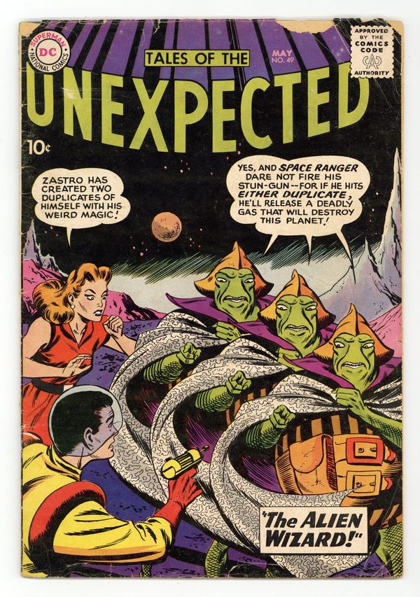 Cover art by Bob Brown. The Fantastic Lunar-Land, art by Lee Elias. House ad for Brave and the Bold #29 and Showcase #26, art by Mike Sekowsky, Joe Kubert, and Murphy Anderson. Ghostly Miners! filler page, art by Morris Waldinger. Professor Eureka humor page by Henry Boltinoff. Steal Planet Xerbo, art by Russ Heath. Interplanetary Experiment text story. The Alien Wizard starring Space Ranger, art by Jim Mooney; an alien named Zastro creates two duplicate images of himself. Science Shorts filler page by Henry Boltinoff. 36 Pages, Full Color. Cover price $0.10.