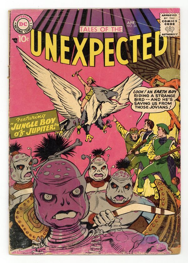 Cover art by Lou Cameron. The Secret of Planetoid Zero, art by Jim Mooney. House ad for Challengers of the Unknown #1, pencils by Jack Kirby, inks by Mike Stein. Moolah the Mystic humor page by Henry Boltinoff. The Fugitive From Saturn, art by Sheldon Moldoff. The Two Dimensional Man, art by Jack Kirby. The Jungle Boy from Jupiter, art by Lou Cameron; a jungle boy riding a bird saves some men from Jovians. 36 Pages, Full Color. Cover price $0.10.