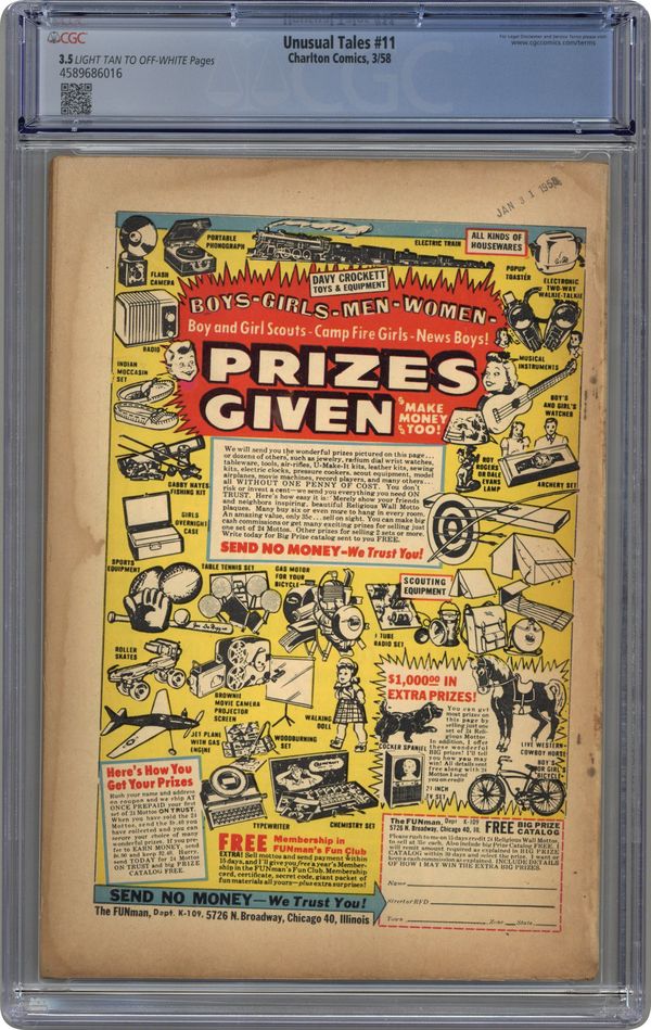 Published Mar 1958 by Charlton Comics Group.$150.00- Paper: Light tan to off white