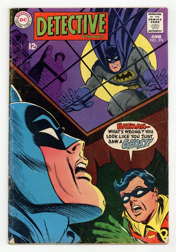 Cover by Neal Adams. "Ghost of the Killer Skies!", script by Denny O'Neil, pencils by Neal Adams, inks by Dick Giordano; When murder breaks out on a World War I movie set devoted to the story of Rittmeister Hans Von Hammer, the Enemy Ace, Batman investigates and finds a modern-day "Von Hammer" devoted to keeping the originals memory untarnished in his own eyes. "Midnight Doom-Boy," script by Frank Robbins, pencils by Gil Kane, inks by Frank Giacoia; When a police surveillance film showing Jason Bard murdering X-rated film director Billy Warlock, the criminologist is arrested; Although the evidence shows that Bard killed Warlock, Barbara Gordon believes that Bard is innocent of the crime and begins launching her own investigation as Batgirl. Letters from letter hack Guy H. Lillian III and comics writers Martin Pasko, Alan Brennert, and Mike W. Barr. 36 pgs., full color. $0.15. Cover price $0.15.