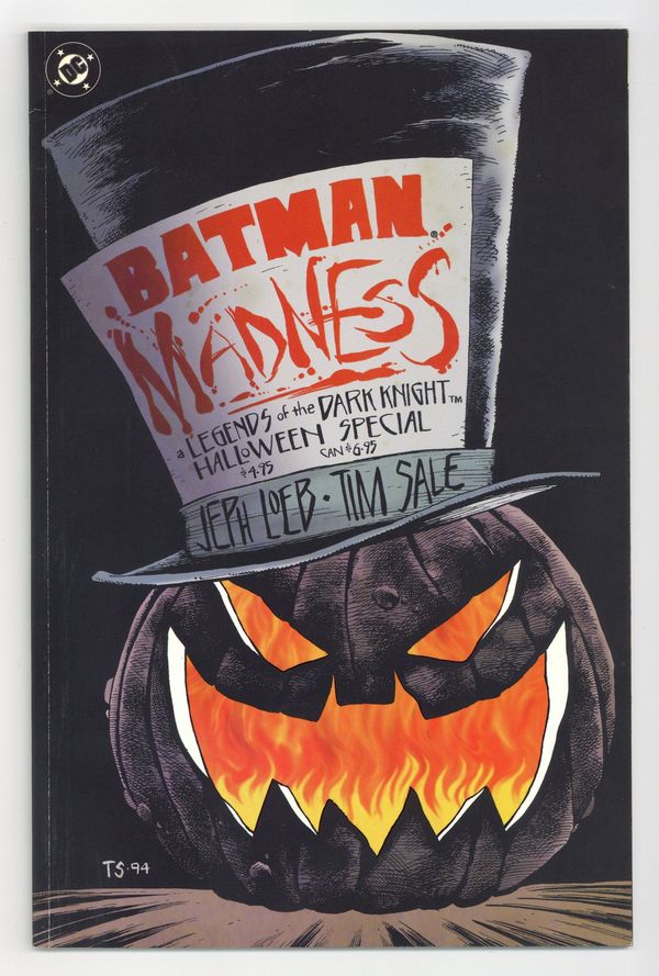 Starts Mar 9 All Hallows Eve has come 'round again...and the Dark Knight of Gotham City has a midnight appointment with terror when he faces the twisted genius of the Mad Hatter! Teenager Barbara Gordon has recently moved in with her uncle, Gotham City Police Captain Jim Gordon. But a Halloween night quarrel leads her to run away...and Barbara's horror is just beginning when she falls into the clutches of the Mad Hatter, one of the most disturbing villains in Batman's rogues gallery. Faced with one of the worst nightmares of his life, Jim Gordon's only hope of recovering his niece rests with Batman. But terrors of the past as well as the present haunt the Dark Knight. That may cost Barbara dearly at the hands of the Mad Hatter and the grotesque workings of his damaged mind, raising fear and human drama to even greater heights! Written by Jeph Loeb, with art and cover by Tim Sale. Prestige Format. 52 pages. Cover price $4.95.