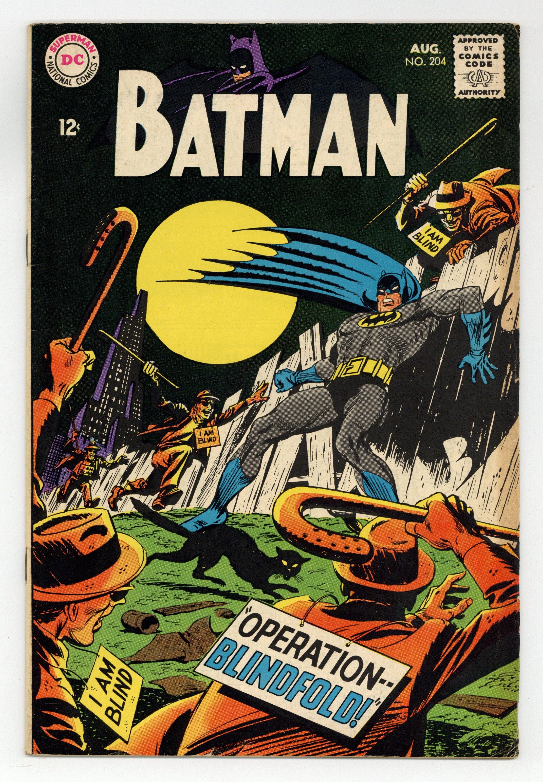 Cover art by Irv Novick. "Operation: Blindfold!", script by Frank Robbins, pencils by Irv Novick, inks by Joe Giella; An unscrupulous criminal named the Schemer kills an innocent blind man and plants evidence on him to lead Commissioner Gordon to believe that he is the Batman!; When the real Batman shows up on the scene, the Police arrest him, believing that he is a phony. Letters to the editor from Biljo White and Shel Dorf. 36 Pages, Full Color. Cover price $0.12.