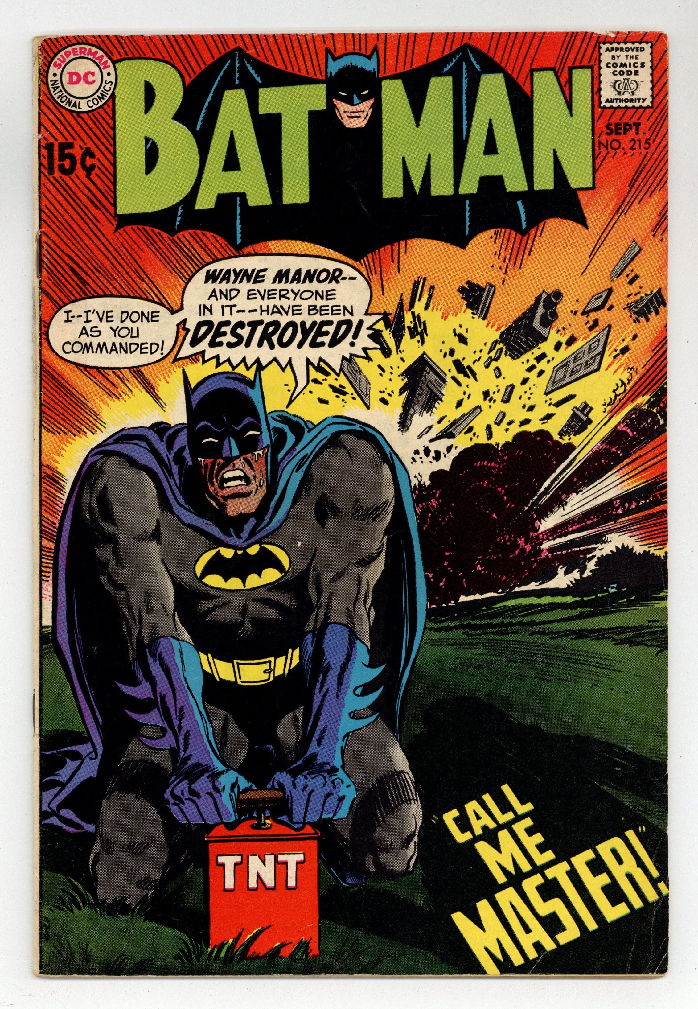 Cover pencils by Carmine Infantino, inks by Murphy Anderson. "The Blockbuster Goes Bat-Mad!", script by Gardner Fox, pencils by Chic Stone (?) and Sheldon Moldoff (?) (as Bob Kane), inks by Joe Giella; By chance, a reformed Mark Desmond sees a Batman display at a local department store and reverts back to his Blockbuster persona, which goes out to destroy anything related to the Caped Crusader. Letters to the editor from comics historian Peter Sanderson Jr. and "Batmania" publisher Biljo White. "The Problem of the Proxy Paintings!", script by Gardner Fox, pencils by Sheldon Moldoff (as Bob Kane), inks by Joe Giella; Martin Tellman calls the Analysts together to help him solve the dilemma he faces: his collection of worthless copies of valuable paintings have suddenly become the real thing! 36 Pages, Full Color. Cover price $0.12.
