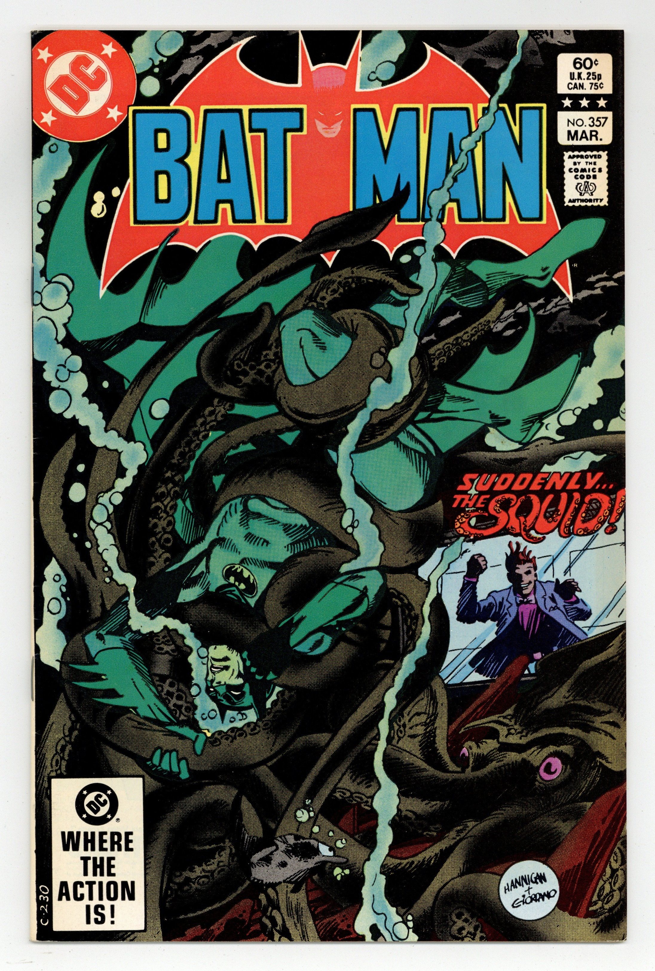 1st printing. Direct Edition. 1st appearance of Jason Todd and Killer Croc (cameo). Cover pencils by Ed Hannigan, inks by Dick Giordano. "Squid" starring Batman, Dick Grayson, Commissioner Gordon, Hamilton Hill, Joey Taylor, Waldo Flynn, Olivia Ortega, and the Squid (first appearance), script by Gerry Conway, pencils by Don Newton, inks by Alfredo Alcala; The Squid comes to Gotham City to launch a takeover of its underworld, and to trap the Batman; A mobster offering crooked protection threatens a circus owner; Refusing to give in, the owner unwittingly puts a target on the heads of his star performers, a husband and wife trapeze act; Days later, a young boy discoveres that his parents had been brutally murdered. Taken in by the sympathetic millionaire Bruce Wayne (Batman) the boy trains and becomes his new mentor's sidekick as Robin, the boy wonder; Not Dick Grayson, though--This time it was the copycat story of Jason Todd, the second person to become Robin. Story continues in the pages of Detective Comics (1937 1st Series) #524. Letter to the editor from comics editor/writer Kevin Dooley. 40 Pages, Full Color. Cover price $0.60.