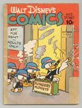 Cover by Al Taliaferro. Stories and art by Floyd Gottfredson, Ted Thwaites, Merrill De Maris, Bob Karp, Hubie Karp, Manuel Gonzales, Bill Wright, Bob Grant, and Al Taliaferro. Sometimes listed as Vol. 2, #7. The long-running vehicle for Disney character comics featured early work by Carl Barks, the legendary Good Duck Artist. In a classic Floyd Gottfredson story from the Mickey Mouse comic strip, Mickey finds a genie and has an Arabian Nights adventure. Donald crashes his car while selling insurance. On Penguin Isle, Peter and Polly Penguin find trouble with Wally the walrus and a shark. Double Feature; When It Rains It Pours; He Wants His Money's Worth; The Miracle Master; Too Many Daisies; No Luck; Sweet on Pluto; Join the Parade; Penguin Isle; The Twins Win; Goofy Goes to the Dogs; Too Realistic; Mickey Mouse Movies; A Born Scientist; On the Carpet; Donald Gets Drafted; A Friend in Need; A Bouncing Baby; Hollywood Chatter; Realization; Pluto Takes Off; Pluto Gets Outsmarted; The Wise Little Hen; One Man Crew; Monshure Insists; The Nephews Keep Pluggin'; The Sleepwalker; What, No Rubbers!; They Can't Gyp Goofy; Poor Sport; The Pound of Cure. 64 pages, Full Color. Cover price $0.10.