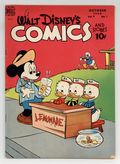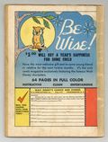 Cover by Walt Kelly. Stories and art by Carl Barks, Floyd Gottfredson, Bill Walsh, Bob Karp, Karl Karpé, Hubie Karp, George Waiss, Bill Wright, Sylvia Holland, and Al Taliaferro. Sometimes listed as Vol. 7 #1. The long-running vehicle for Disney character comics featured work by Carl Barks, Floyd Gottfredson, and Pogo's Walt Kelly. In a classic story from the Mickey Mouse comic strip, Mickey investigates the haunted house he inherited from his Uncle Max. In a story by Barks, Donald's nephews invent a gold finder. Li'l Bad Wolf learns that in the Woods, not all Grandmas are what they appear to be. Donald Duck; Bucky Bug; Li'l Bad Wolf; Mickey Mouse; Johnny Fedora; Goofy the Magician; No Soap!; The Big Wind; Minnie Mouse: Bath Day; Lighthouse Keeping; Mickey Mouse: The House of Mystery. 48 pages, Full Color. Cover price $0.10.