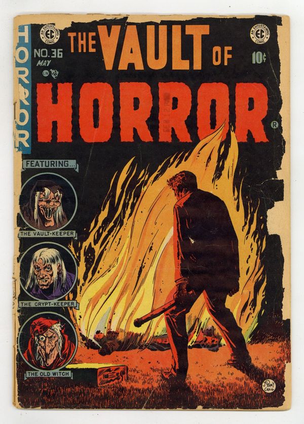 Cover by Johnny Craig. Ad for Panic. "Twin Bill!", script and art by Johnny Craig; Larry stood there in the dark, sweating profusely, waiting for them to come: his wife and her lover. He remembered the night he caught them in each other's arms... how he made them take shovels and forced them to dig their grave. "Witch Witch's Witch!", script by Johnny Craig, art by Jack Davis; Eric came home to Blumstedt with his new wife... who was not the girl to whom he had been betrothed since childhood. "Cooler" text story. "Pipe Dream," script by Johnny Craig, art by Bernie Krigstein; Chen begins his tale while frequenting an opium den, a place where he can have drug-induced dreams that give him power and importance. "Two-Timed!", art by Graham Ingels (as Ghastly); It was 1900 and little Dickie lay in his bed until he heard a sound he thought was his Mom and Dad returning home; Instead it came from outside, and he followed the sound until he saw a man viciously beating a woman to death. 36 pgs., full color. $0.10. Cover price $0.10.