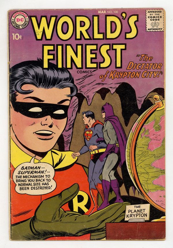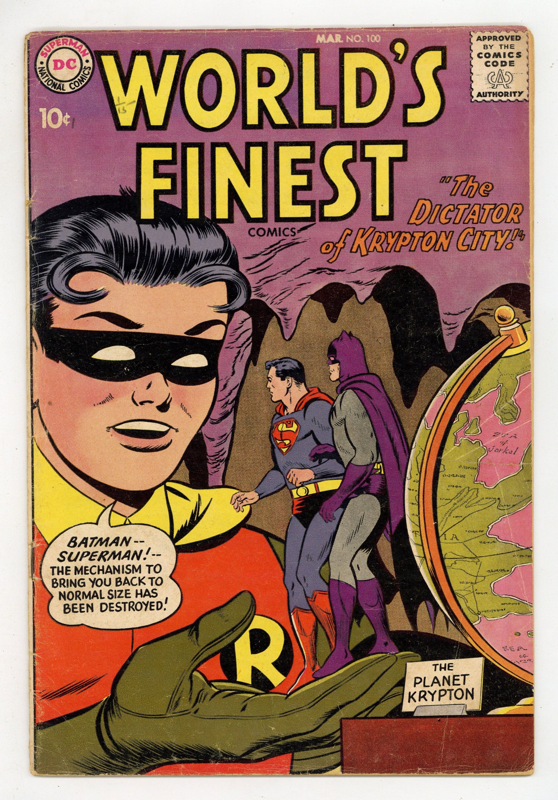 Cover pencils by Curt Swan, inks by Stan Kaye. The Club of Heroes starring Superman and Batman, script by Edmond Hamilton, pencils by Dick Sprang, inks by Stan Kaye; John Mayhew brings the Club of Heroes together and will give them a headquarters, but they must select a chairman for the club; The Heroes decide that the hero who performs the most good deeds will become chairman. Binky Shows "How to Make New Friends!" public service announcement starring Binky, script by Jack Schiff, art by Bob Oksner. The Legend of the Keeper of the Winds starring The Arrow Maker, art by Jim McArdle. Video Laffs humor half-pager by Harry Lampert. Ollie humor page by Henry Boltinoff. How to Become an Expert Softball Player text article. The Strange Circus of Mr. Sinistro starring Green Arrow, art by George Papp. 2nd Appearance of The Batmen of All Nations. (The Batmen of All Nations made their first modern age appearance in Batman #667-669.) 36 Pages, Full Color. Cover price $0.10.