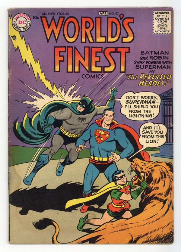 Cover pencils by Curt Swan, inks by Stan Kaye. The Boss of Batman and Superman!, script by Edmond Hamilton, pencils by Dick Sprang, inks by Stan Kaye; A scientist's machine accidentally gives both Robin and Victor Danning, a villain, super-intelligence by taking away Superman's super-intelligence, leaving Superman slow and dull. House ad for Superman's Girl Friend, Lois Lane #1. Dexter the Cab Driver humor page by Henry Boltinoff. Raid of the Vulture Man starring Green Arrow, art by George Papp. Do You Know What's Behind a Law? public service announcement, script by Jack Schiff, art by Bob Brown. The Militia Without Muskets starring Tomahawk, art by Fred Ray. 36 Pages, Full Color. Cover price $0.10.