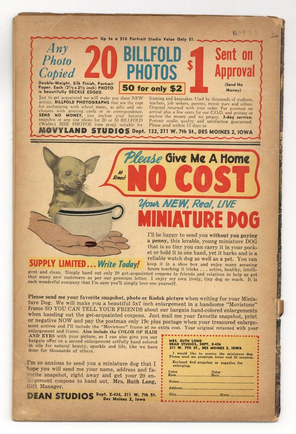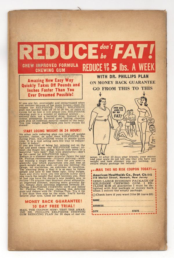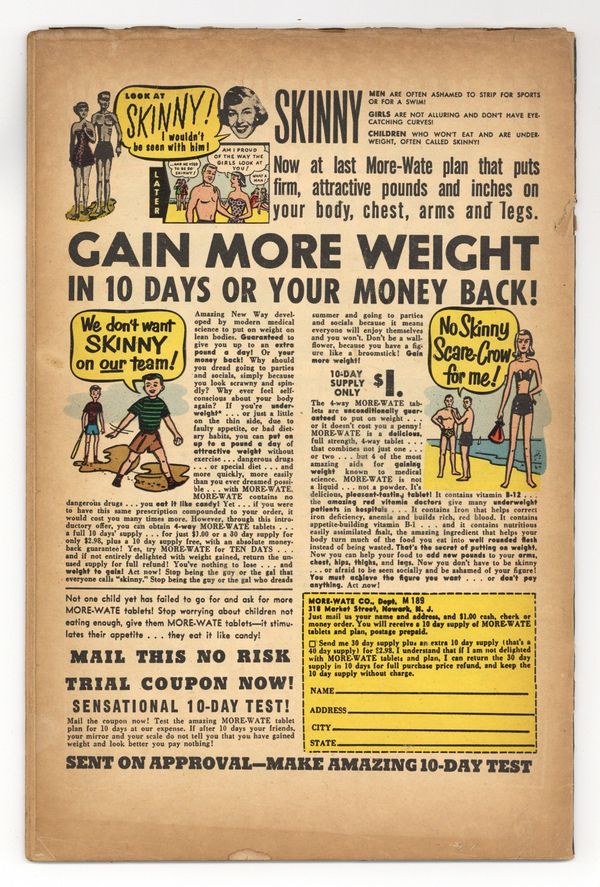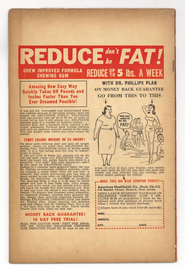 Published Jun 1954 by Fiction House.$35.00- 1 1/2" cumulative spine split. Water damage. Staple rust with migration.