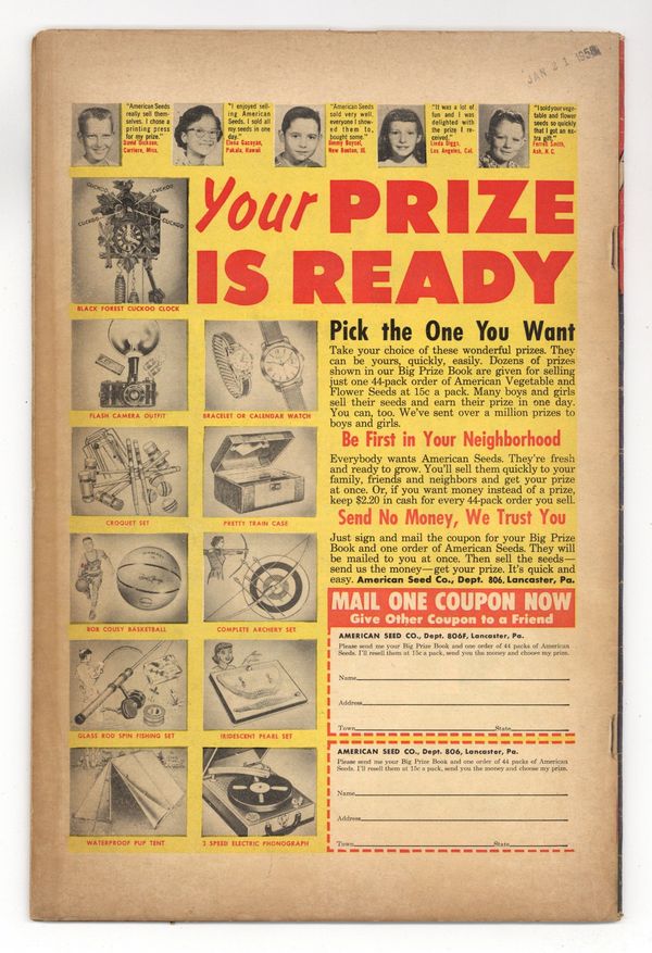 Cover art by Winslow Mortimer. The City That Was For Sale starring Superman, pencils by Wayne Boring, inks by Stan Kaye; An encounter with an unknown black planet destroys Superman's fine motor control. Casey the Cop humor page by Henry Boltinoff. The Master of 1000 Duels starring Green Arrow, art by George Papp. The Battle of the Beasts starring Tom Sparks, Boy Inventor, pencils by Bob Brown, inks by Sy Barry. Valley of Dusty Death starring the Wyoming Kid, script by Gardner Fox, art by Howard Sherman. Passage to Peru, pencils by Carmine Infantino, inks by Frank Giacoia. Varisty Vic humor page by Henry Boltinoff. Prof Eureka humor page by Henry Boltinoff. Stages Through The Ages text article by B. Fairbanks. The Private Life of Commissioner Gordon starring Batman, script by David Vern, pencils by Dick Sprang, inks by Charles Paris; Flashback of the life of Jim Gordon. Sweet Land of Liberty public service announcement starring Peter Porkchops, script by Jack Schiff, art by Otto Feuer. One-page Tootsie Roll ad, "Captain Tootsie and His Vacation-Time Pals" by Bill Schreiber. 76 Pages, Full Color. Cover price $0.15.