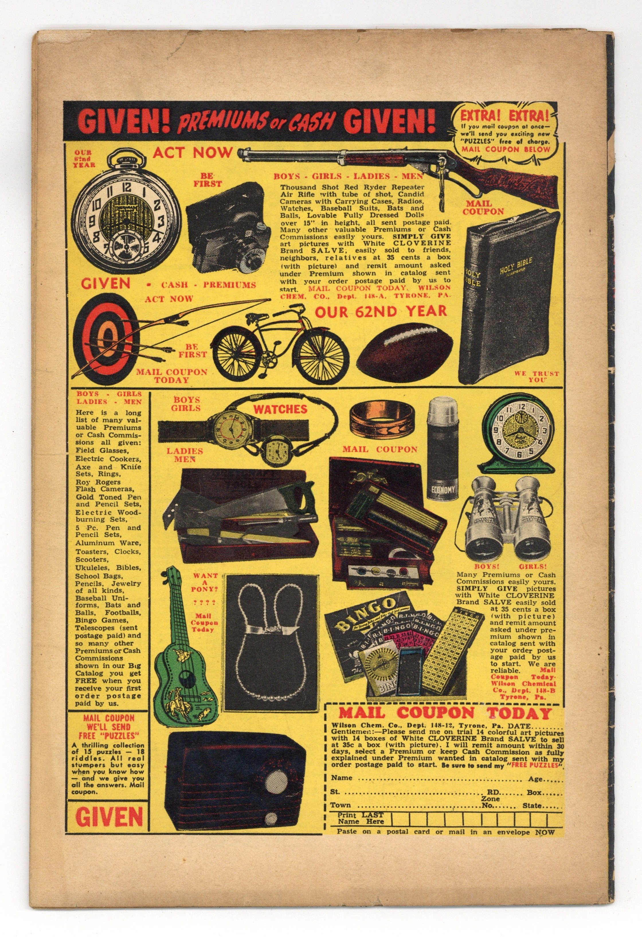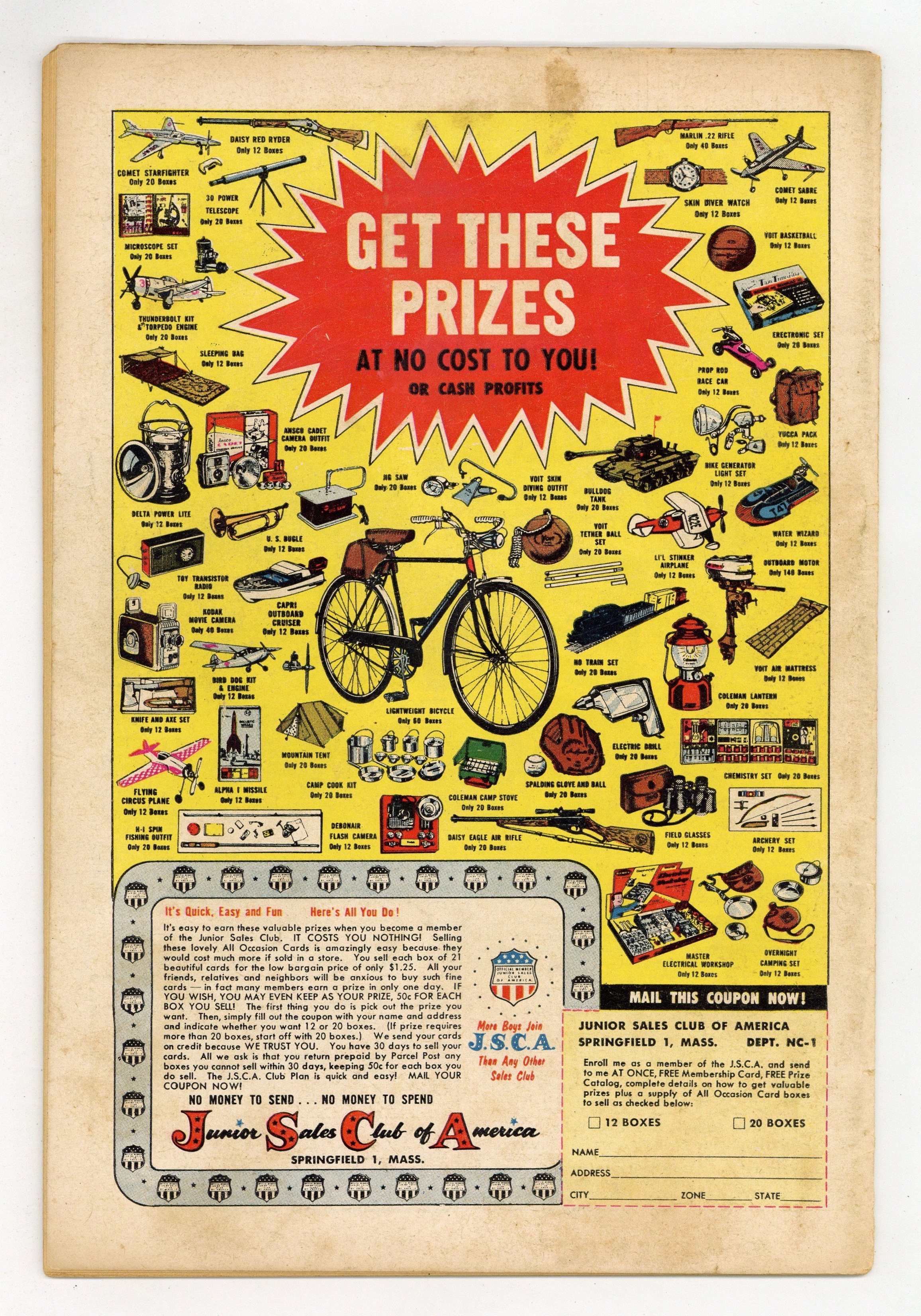 Cover pencils by Win Mortimer, inks by Stan Kaye. The Men Who Shot Superman starring Superman, Lois Lane, and Howard Figit, script by Alvin Schwartz, art by Al Plastino. Casey the Cop humor page by Henry Boltinoff. The City Without a Jail starring Green Arrow, script by George Kashdan, art by George Papp. Tom Sparks, Boy Inventor. Your United Nations At Work! public service announcement, script by Jack Schiff, art by Win Mortimer. The Town the Law Forgot starring Wyoming Kid, script by Ryerson Johnson, art by Howard Sherman. Shorty humor page by Henry Boltinoff. Terror on the Choo Choo Train starring Zatara, script by Joe Samachson, art by Ralph Mayo. Varsity Vic two-pager by Henry Boltinoff. Wrestling Through The Ages text article. White Feather For Batman starring Batman, Robin, and the Penguin, script by David Vern, art by Dick Sprang. 76 Pages, Full Color. Cover price $0.15.