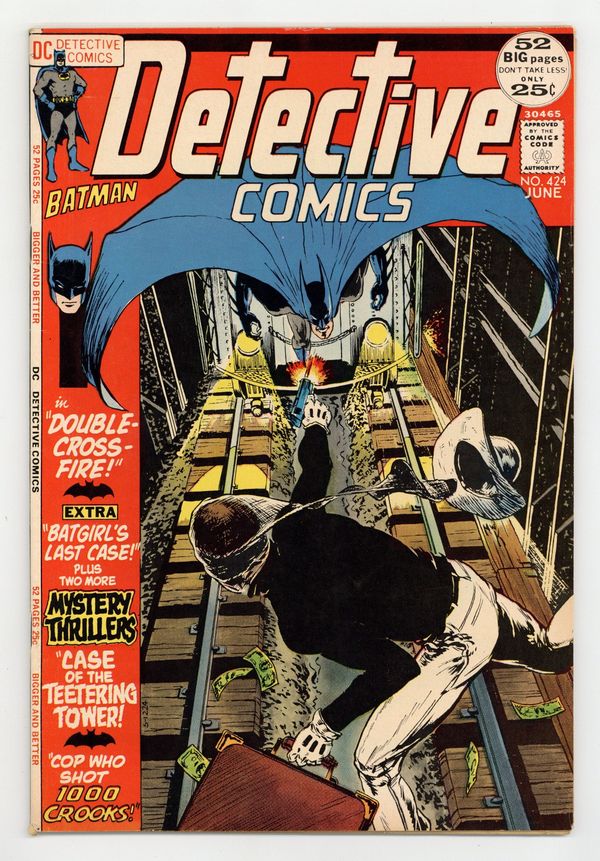 Starts Feb 2 Cover pencils by Neal Adams, inks by Dick Giordano. "A Vow from the Grave!," script by Denny O'Neil, pencils by Neal Adams, inks by Dick Giordano; Batman captures Kano Wiggins and also helps solve the murder of a circus side-show performer. "Battle of the Three M's," script by Frank Robbins, pencils by Don Heck, inks by Dick Giordano; When a popular fashion model Mamie Acheson is injured and has to select one of three models (Maxi, Midi or Midi) to act as her replacement while her leg heals, it causes quite a stir in the fashion world; Batgirl soon finds herself involved after a suspicious visit from a member of a fashion company to her library seeking to get certain books. Letter to the editor from comics writer Martin Pasko. 36 pgs., full color. $0.15. Cover price $0.15.