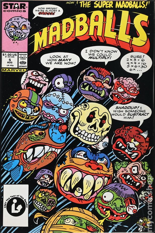 Newsstand Edition. Stories by Michael Gallagher. Art by Howard Post, Michael Gallagher and Roberta Edelman. Now...the Super Madballs! Meet the newest, wildest Madballs ever -- Goal Eater, Touchdown Terror and Foul Shot! What they've got planned for the world of sports is something only the Madballs would dare do! "Plus 3 Makes 19" is by Michael Gallagher, Howard Post and Roberta Edelman. Also in this issue: "Veg Out" by Michael Gallagher (writer/pencils) and Roberta Edelman, and 1-pager "Dear Dr. Dust Brain" by Michael Gallagher, Howard Post and Roberta Edelman. 32 pages, full color. Cover price $1.00.