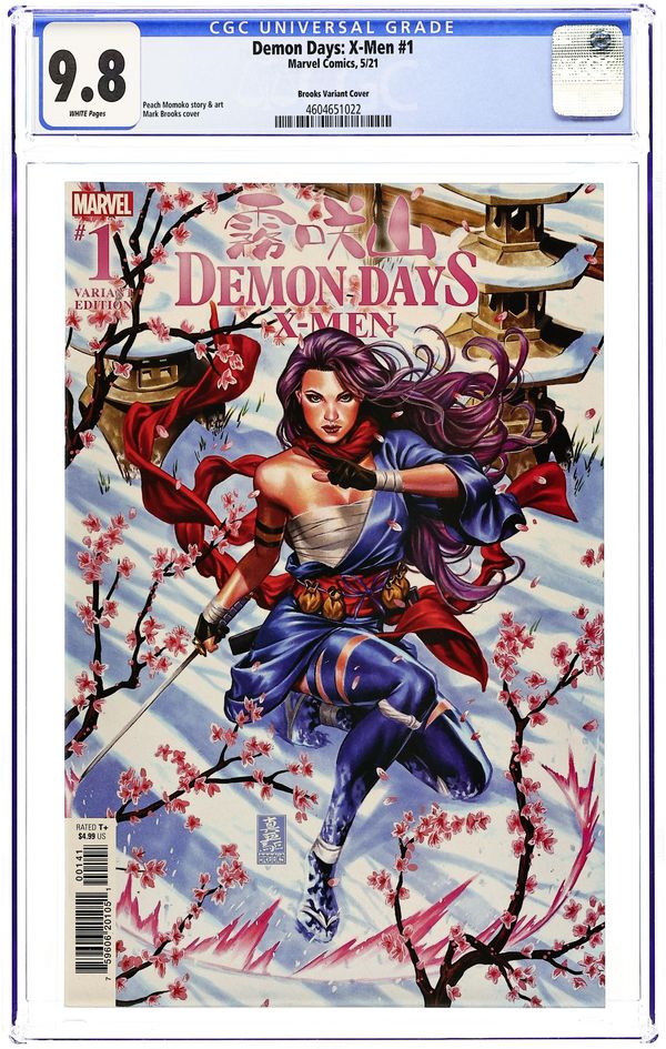 The Yashida Saga: Prelude - Written and Art by Peach Momoko. Cover by Mark Brooks. From STORMBREAKER PEACH MOMOKO comes a Marvel story unlike any you've ever seen before! A wandering swordswoman with a psychic blade arrives at village that's being targeted by demons. One demon is black and white with a terrifying red tongue and another may be the strongest demon there is! In the stunning kick-off issue of this prestige quarterly story, you'll see a revolutionary reimagination of the Marvel Universe that could only come from Peach Momoko. Ready your katana and enter a mysterious world of demons, monsters, mutants, and magic! Book ONE of FIVE of the DEMON DAYS saga! 36 pages, full color. Rated T+ Cover price $4.99.